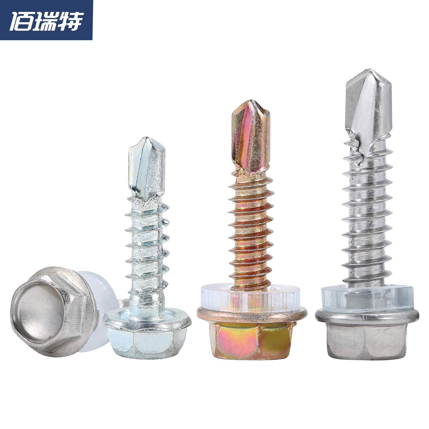 304不锈钢外六角头彩锌钻尾410自攻螺丝自钻彩钢瓦燕尾丝M4.2M6.3