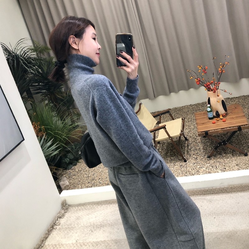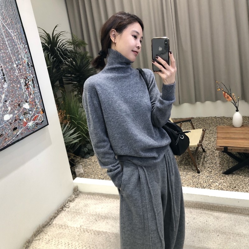 2025秋冬款高级感灰色高领女修身保暖毛衣内搭针织100羊毛打底衫