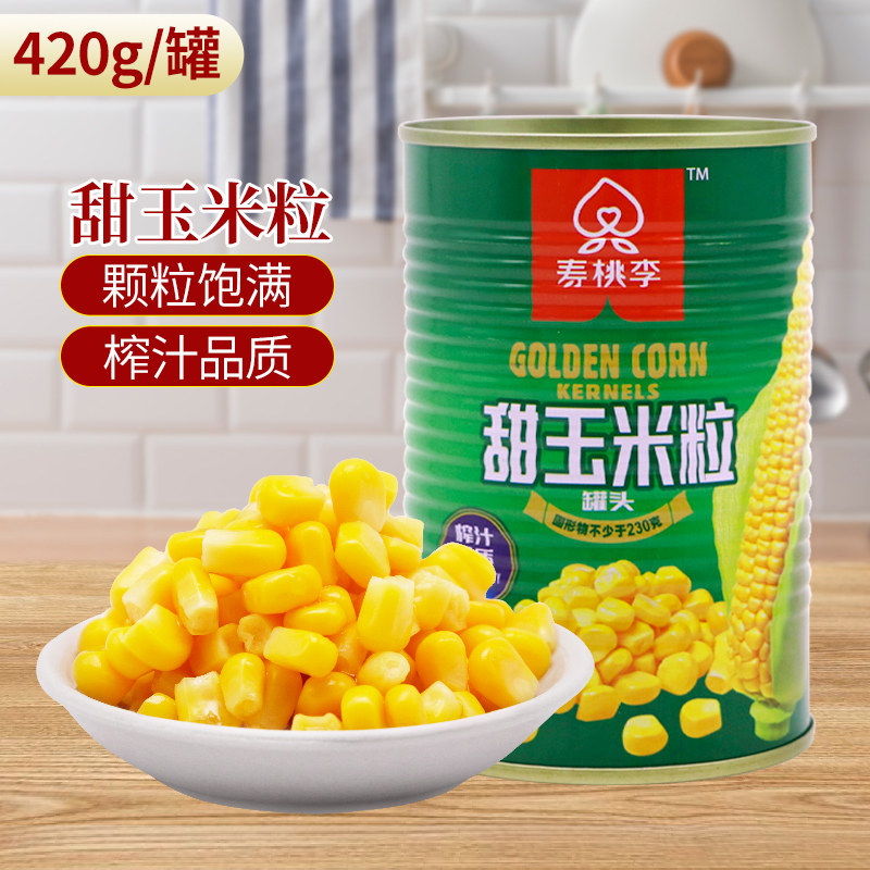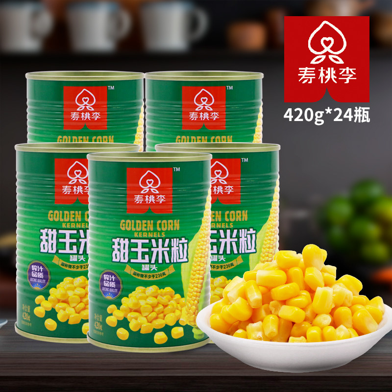寿桃李 香甜玉米粒罐头420g*24罐整箱即食商用玉米烙榨汁甜品原料
