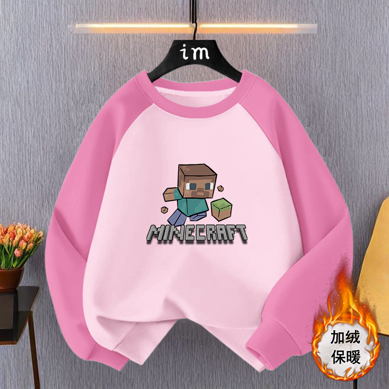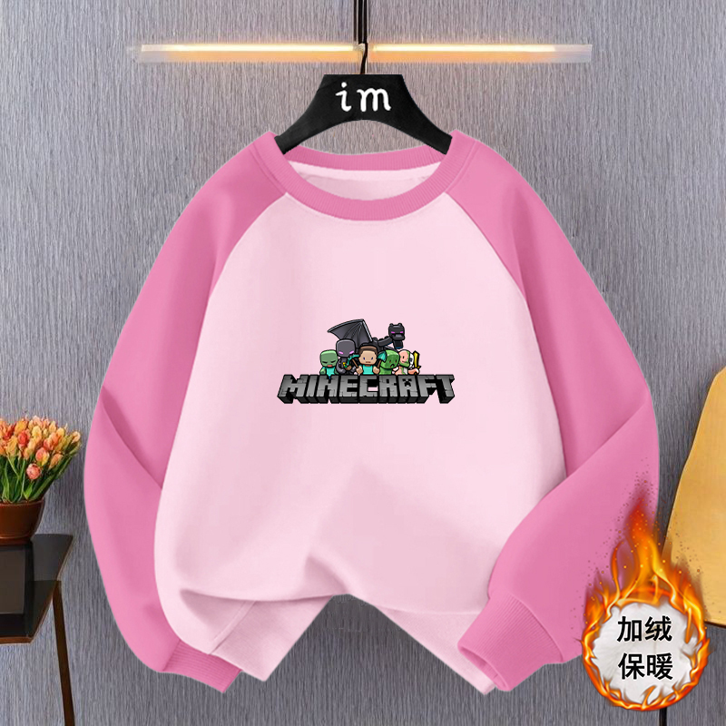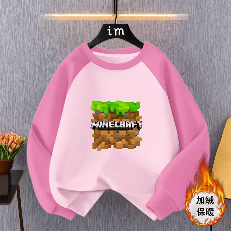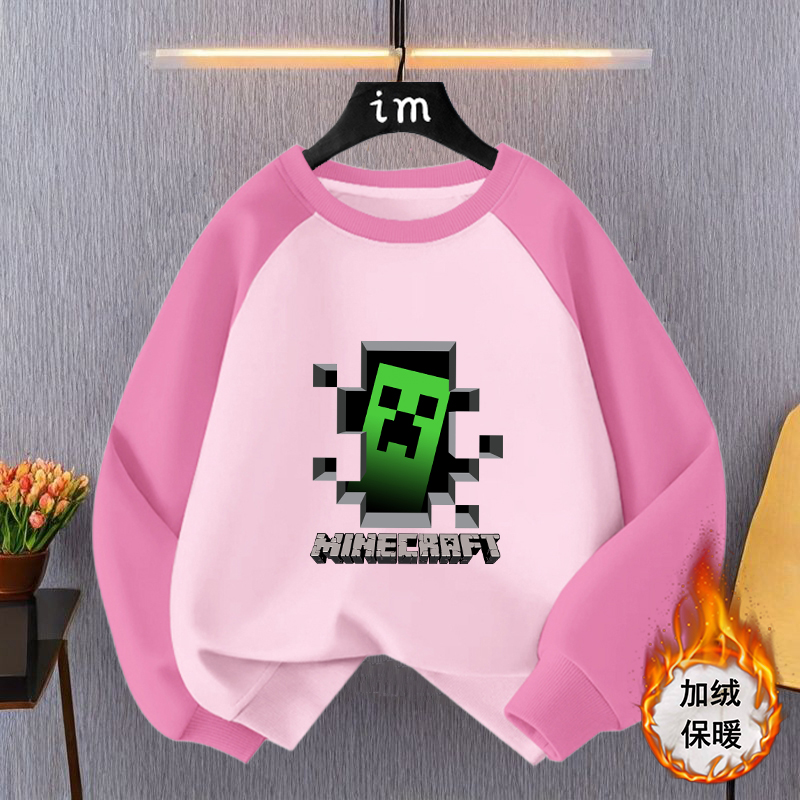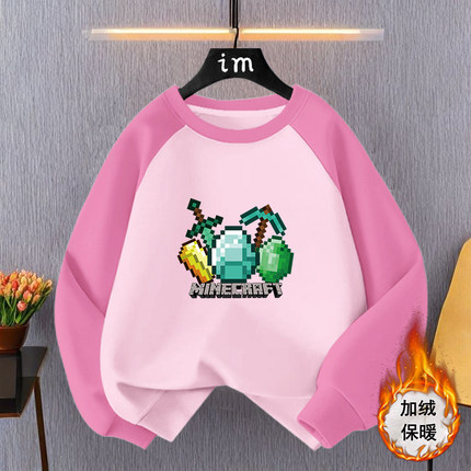 新款我的世界周边Minecraft加绒粉色圆领卫衣女童上衣中大童装