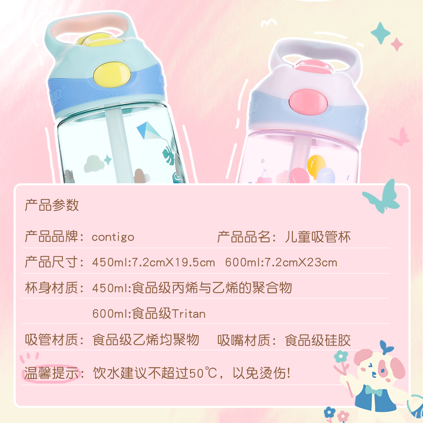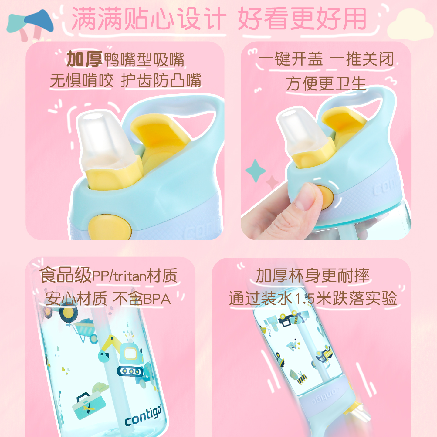 contigo卡通防摔塑料吸管杯