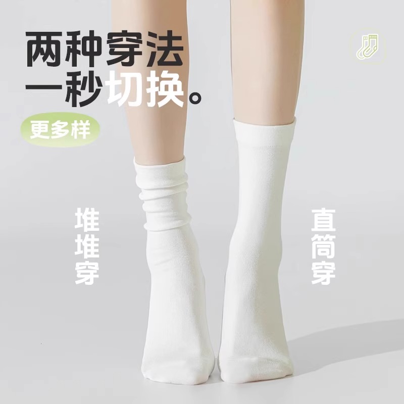 诸暨堆堆袜子女春秋款中筒非纯棉夏季黑白色无骨运动防臭月子长袜