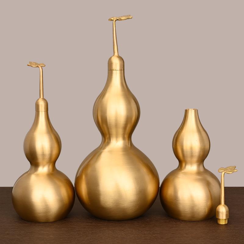 铜葫芦摆件大号纯铜空心开口大葫芦五帝钱风水摆件铜八卦葫芦挂件