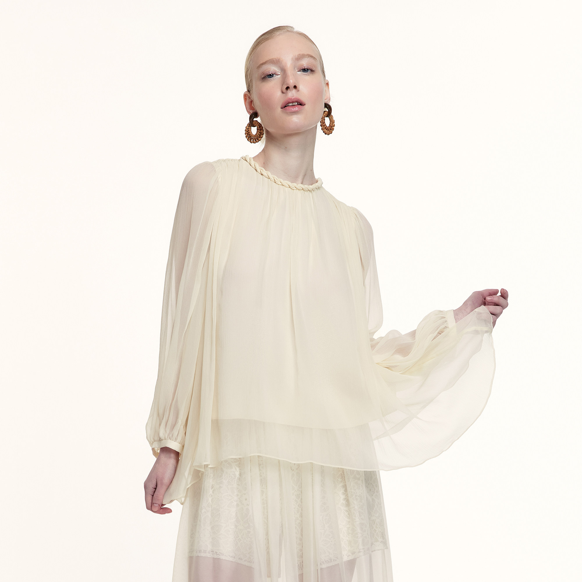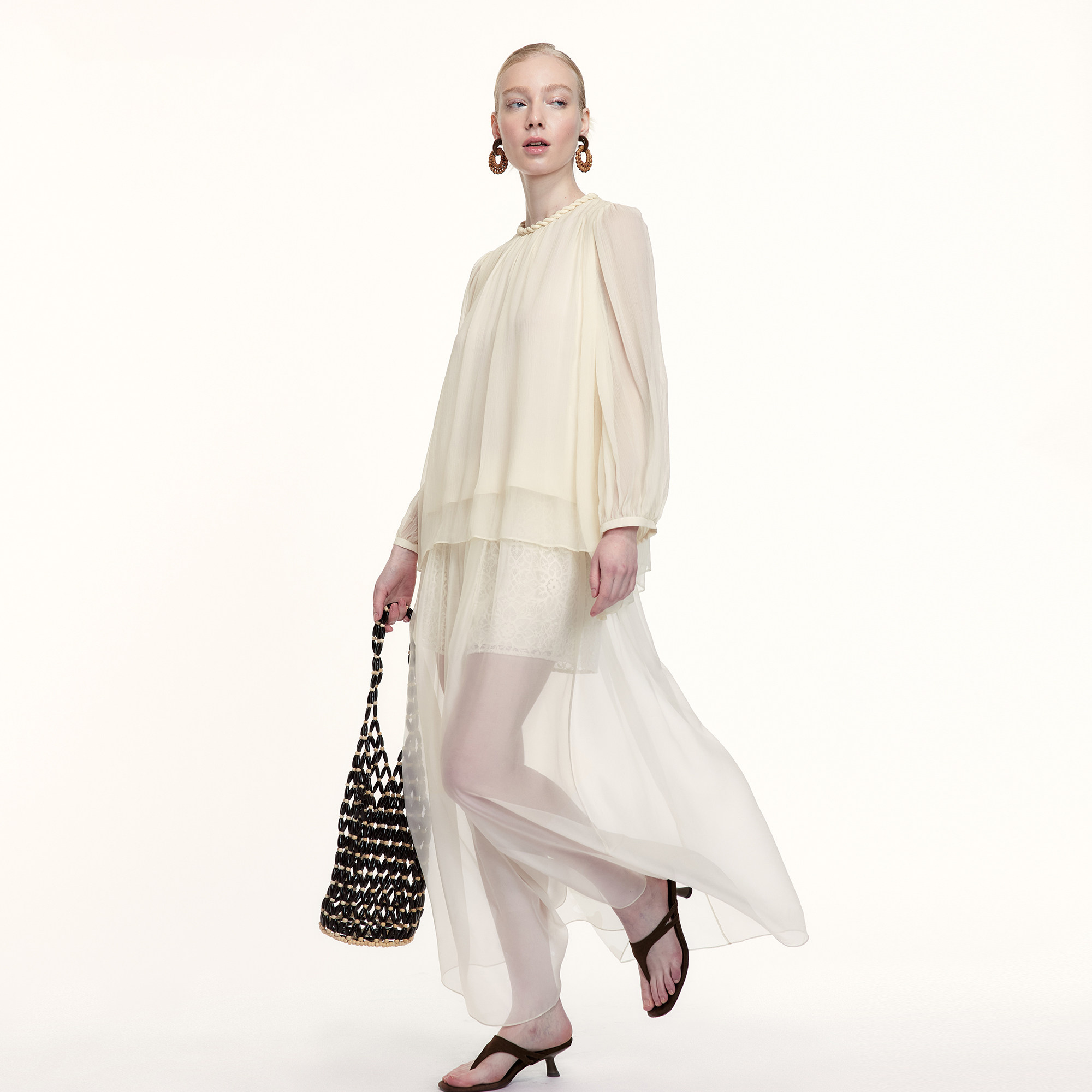 艺之卉防晒薄纱独特编织米色桑蚕丝衬衫轻薄裙裤25秋新款