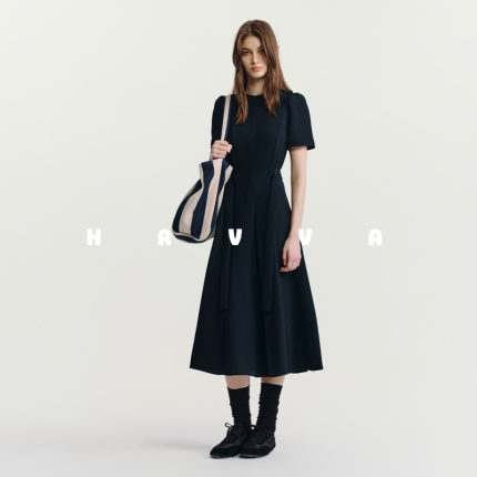 HAVVA简约半袖连衣裙配腰带修身气质轻熟女士裙子2025夏季Q3-2116
