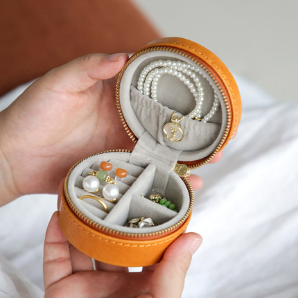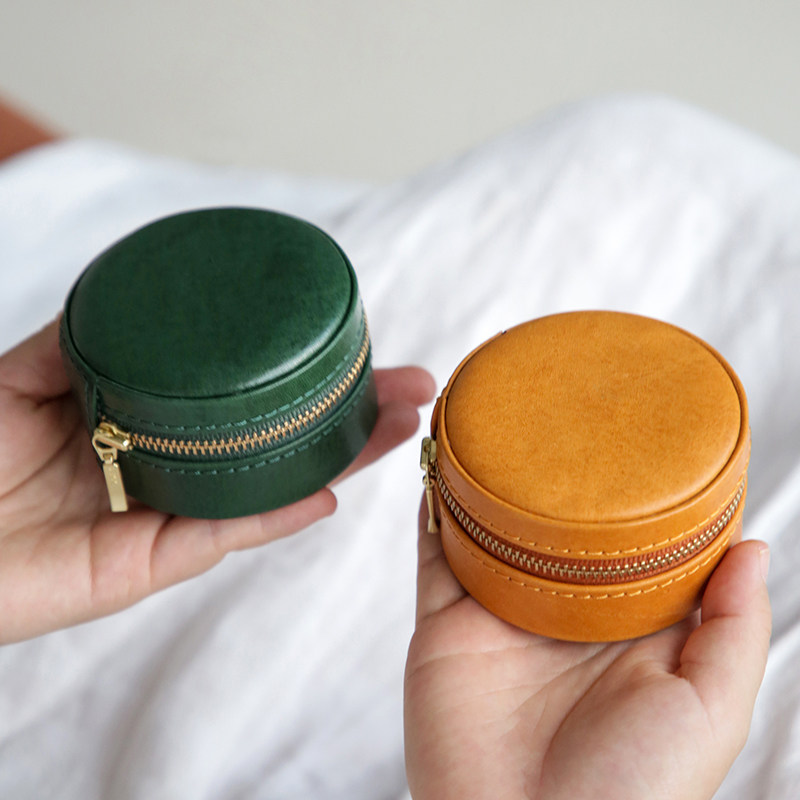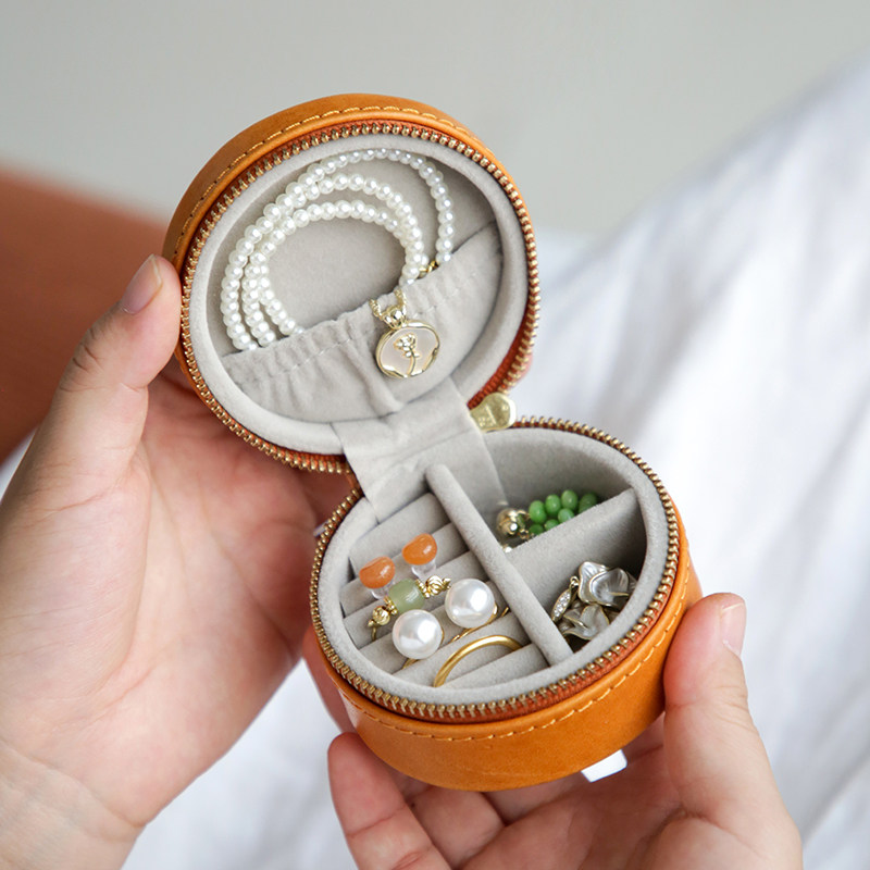 真皮复古迷你女士小首饰盒植鞣头层牛皮耳环戒指高级便携收纳小包