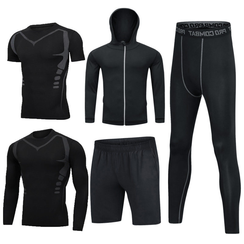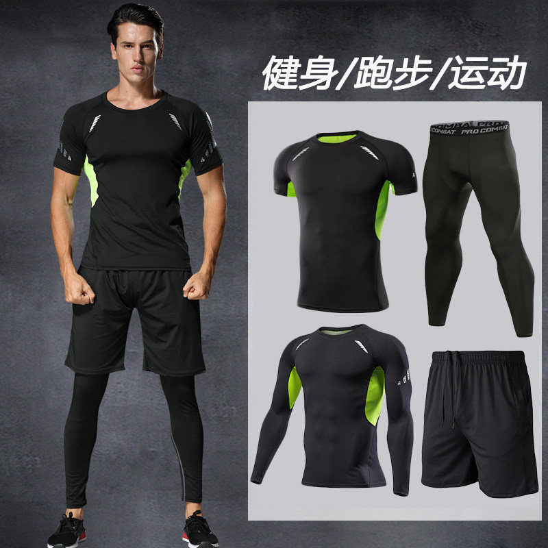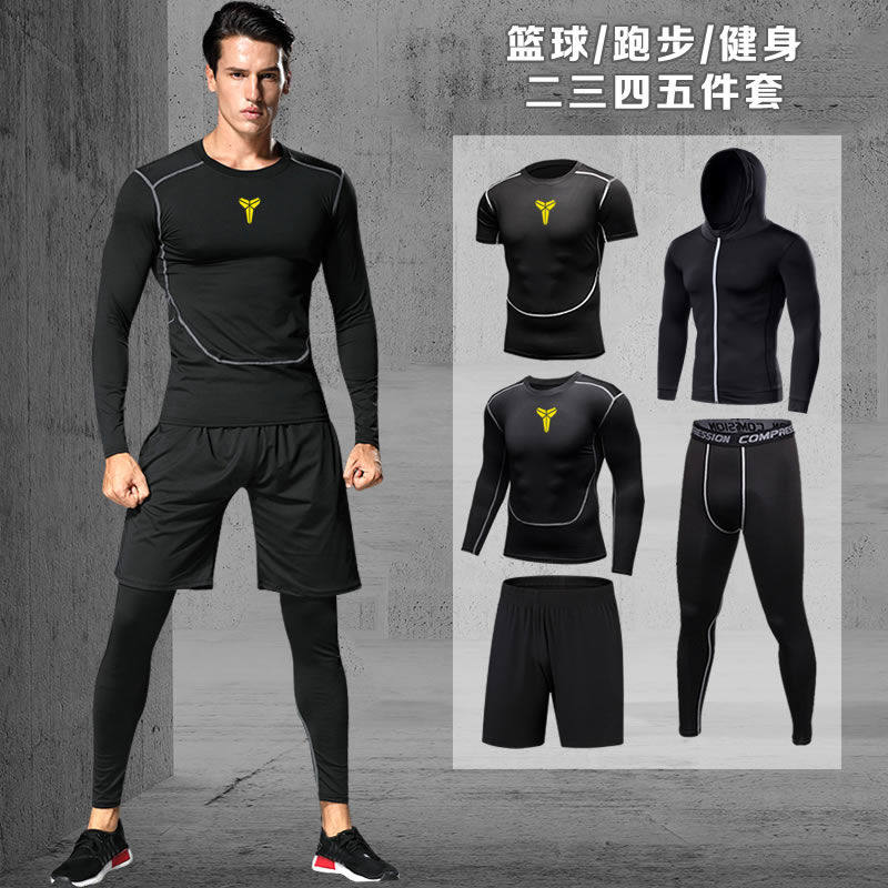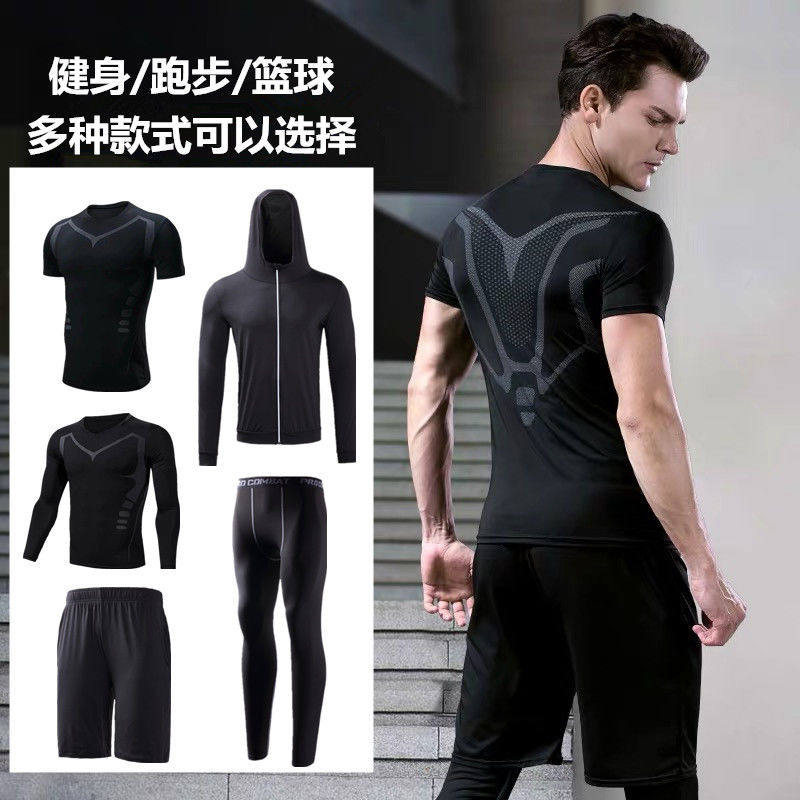 健身锻炼衣服夜晨跑步速干体育训练篮球装备运动紧身男高弹套装夏