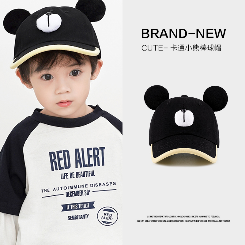 儿童春秋帽子男孩卡通小熊帽子棒球帽夏季户外出游宝宝女童鸭舌帽