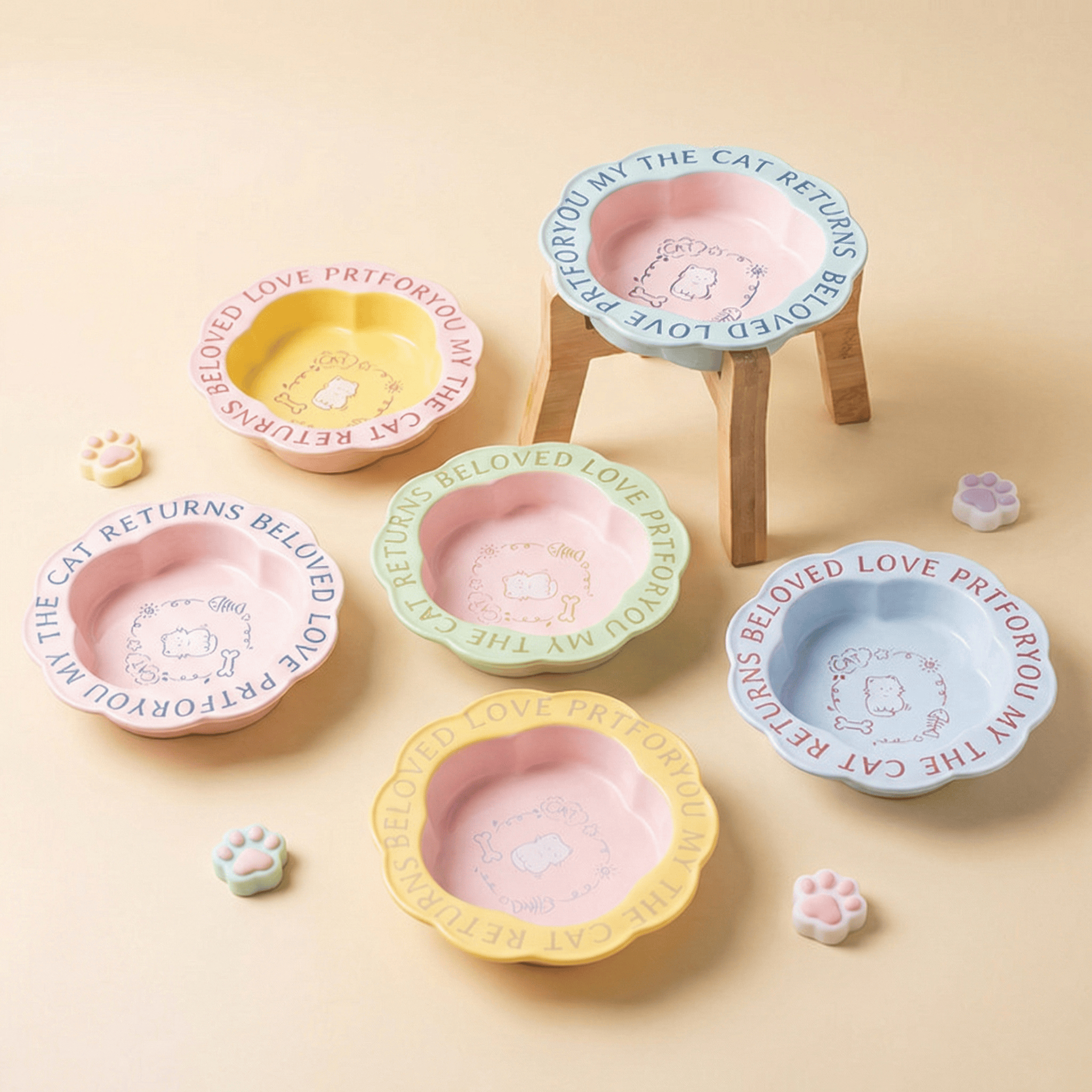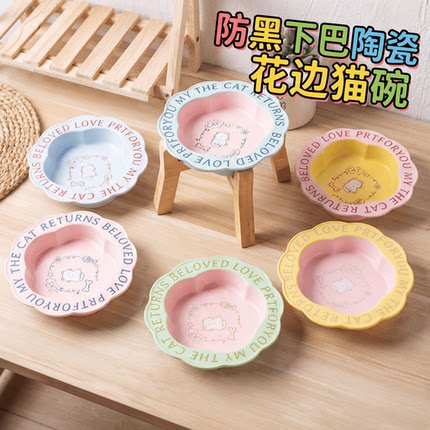 花边猫碗防黑下巴猫罐头食盆陶瓷