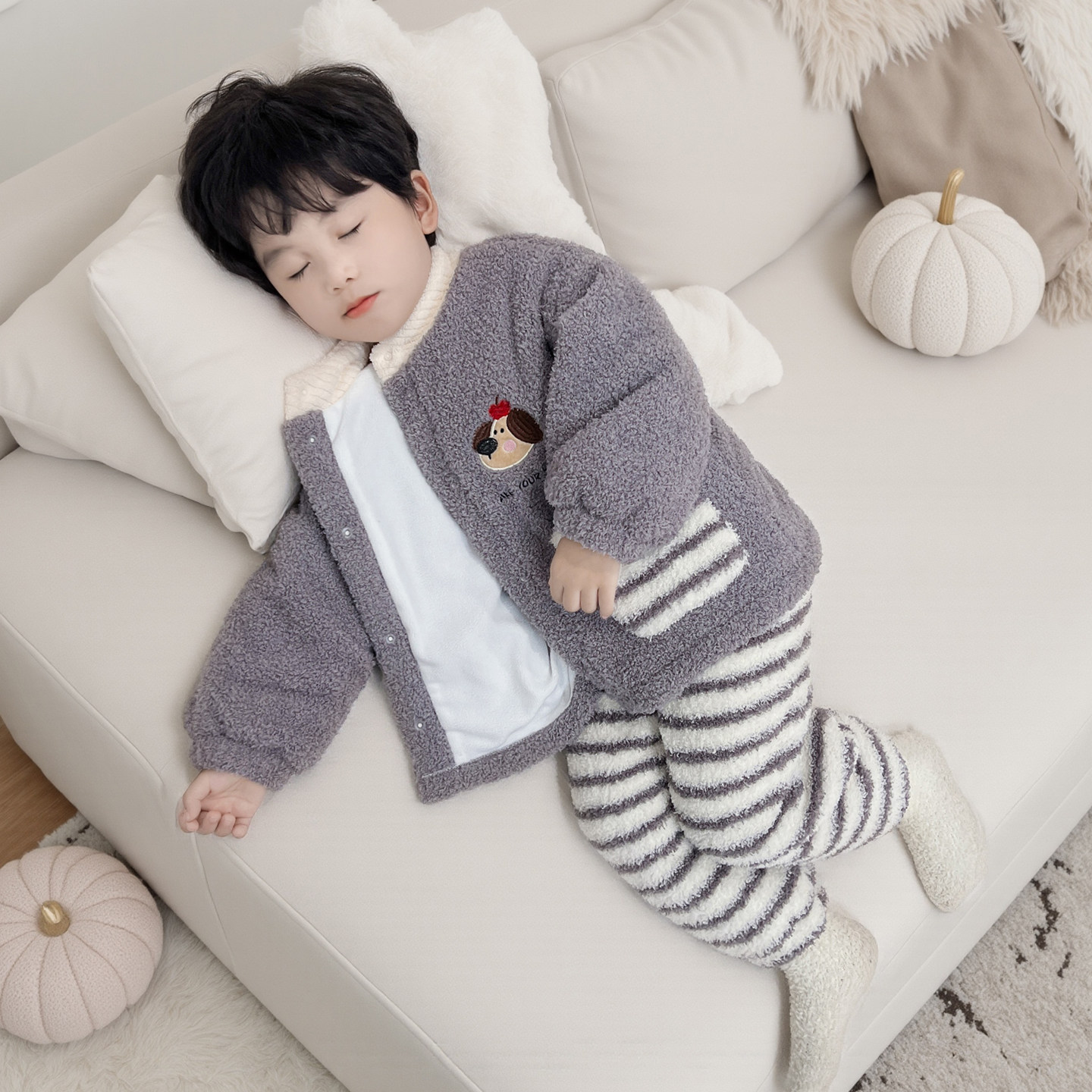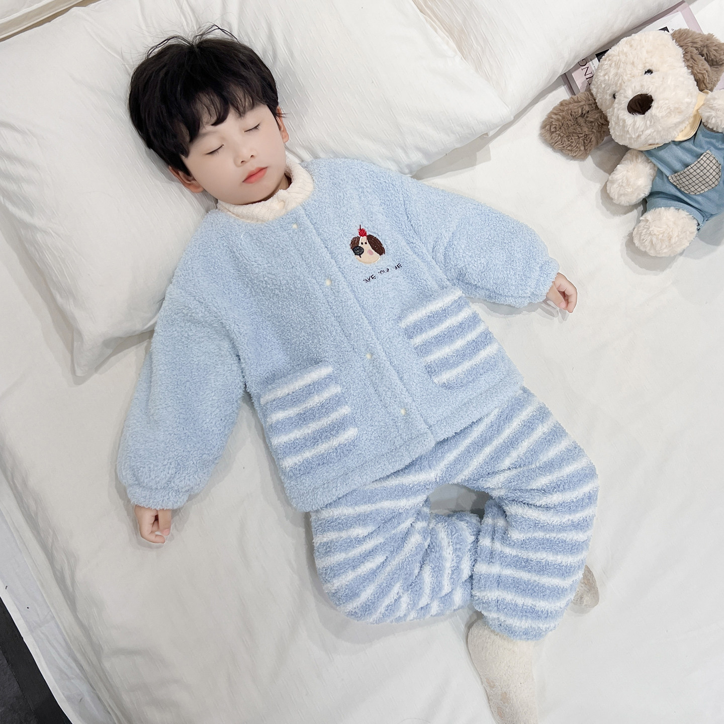 男童睡衣加绒加厚2025新款儿童珊瑚绒家居服冬装保暖男孩宝宝套装