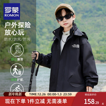 罗蒙童装男童冲锋外套三合一2025春秋新款儿童夹克户外防水登山服