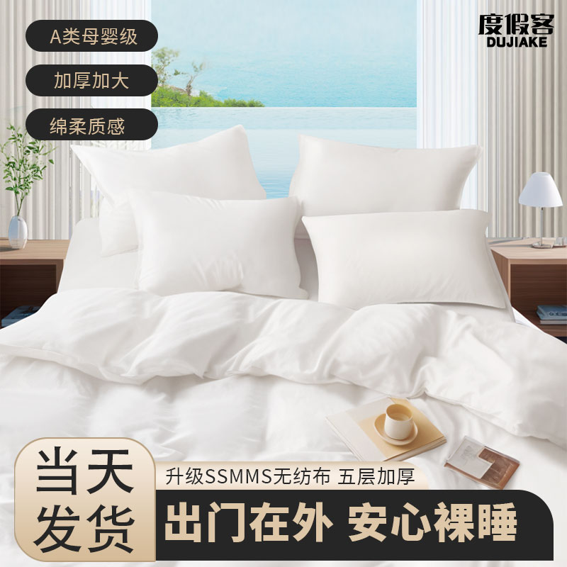 旅游一次性床单被罩枕套旅行酒店单人双人床上用品四件套隔脏便携