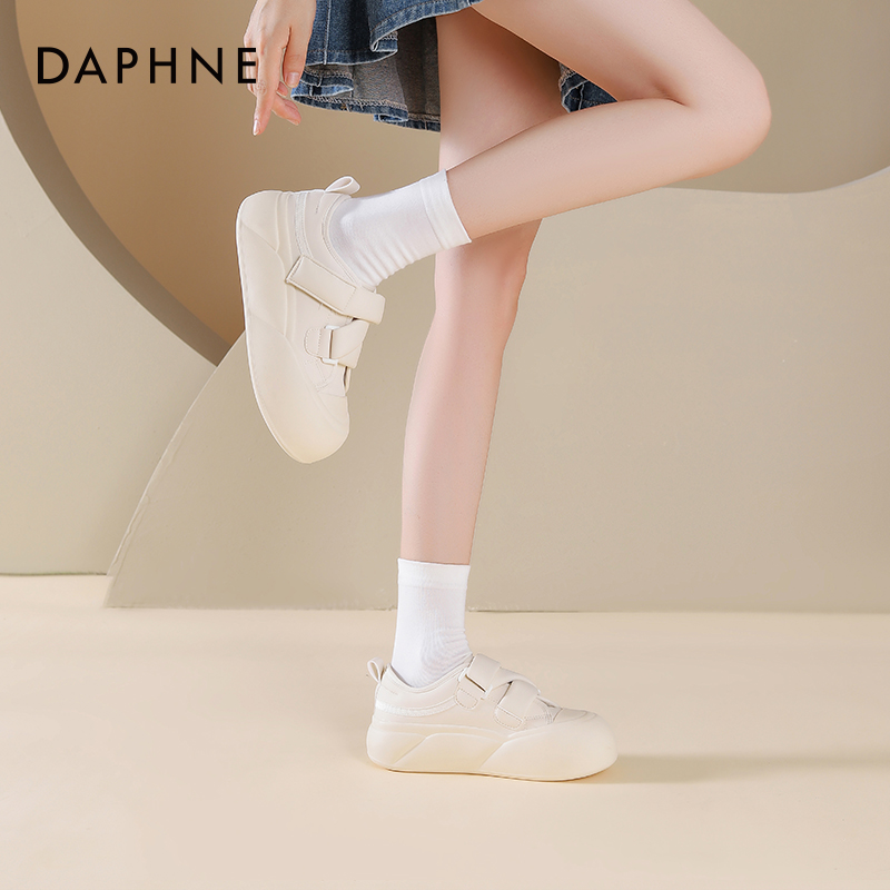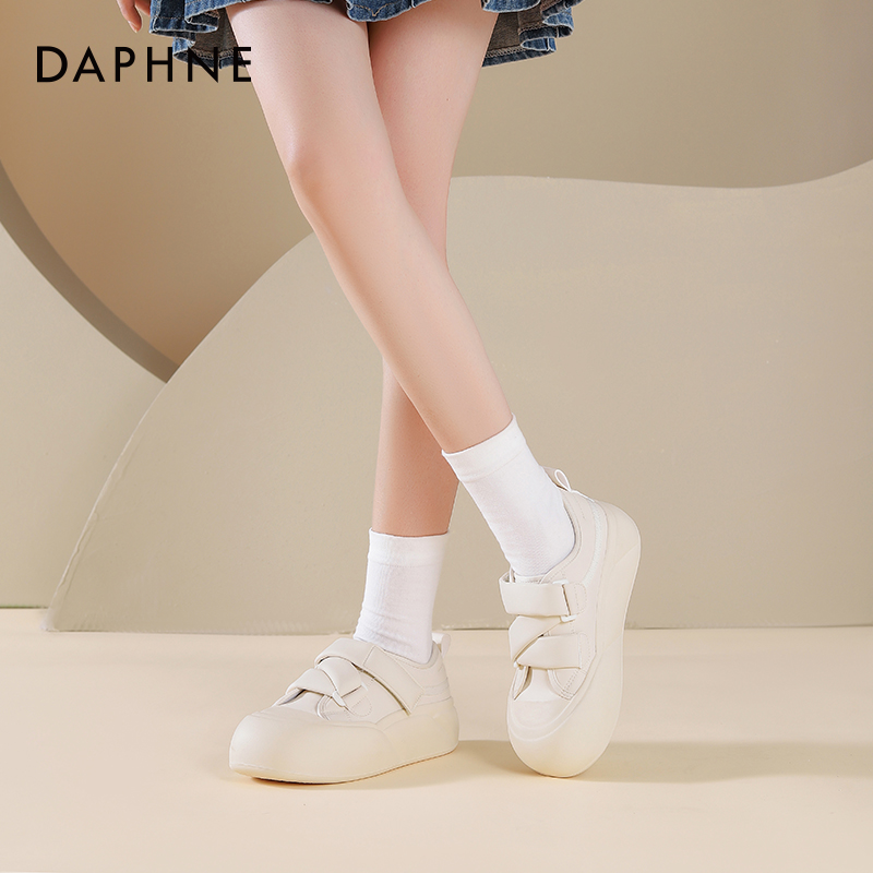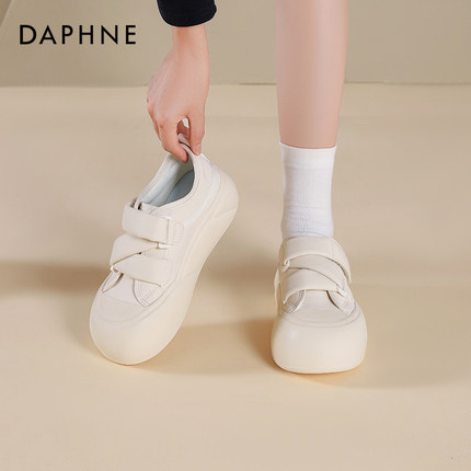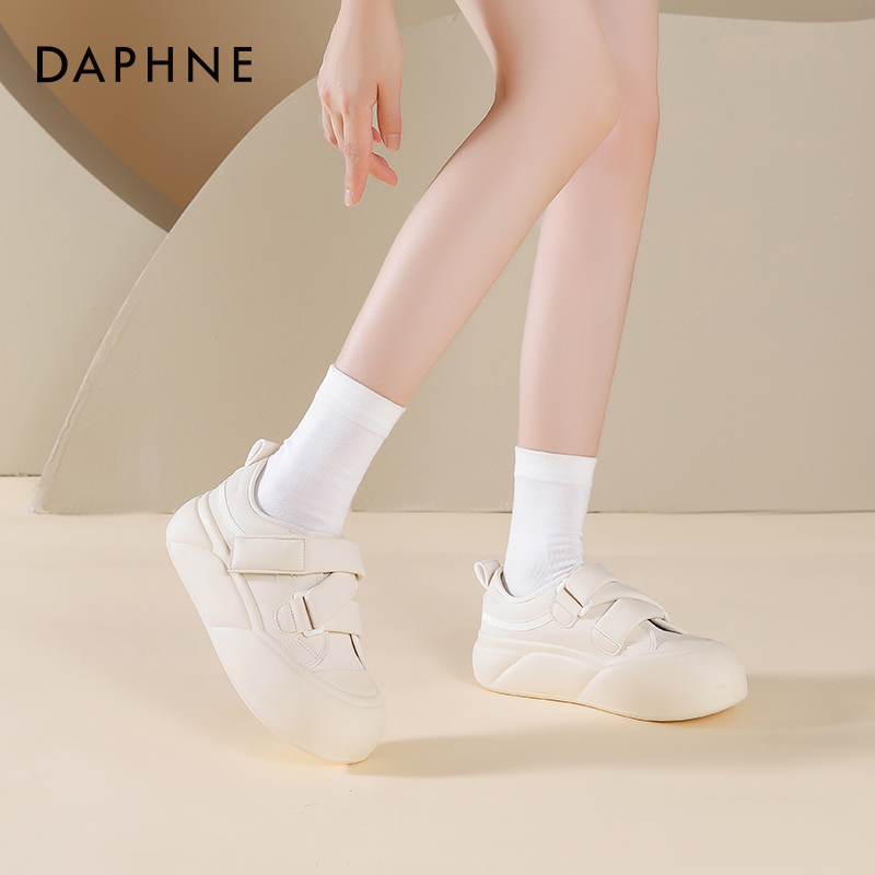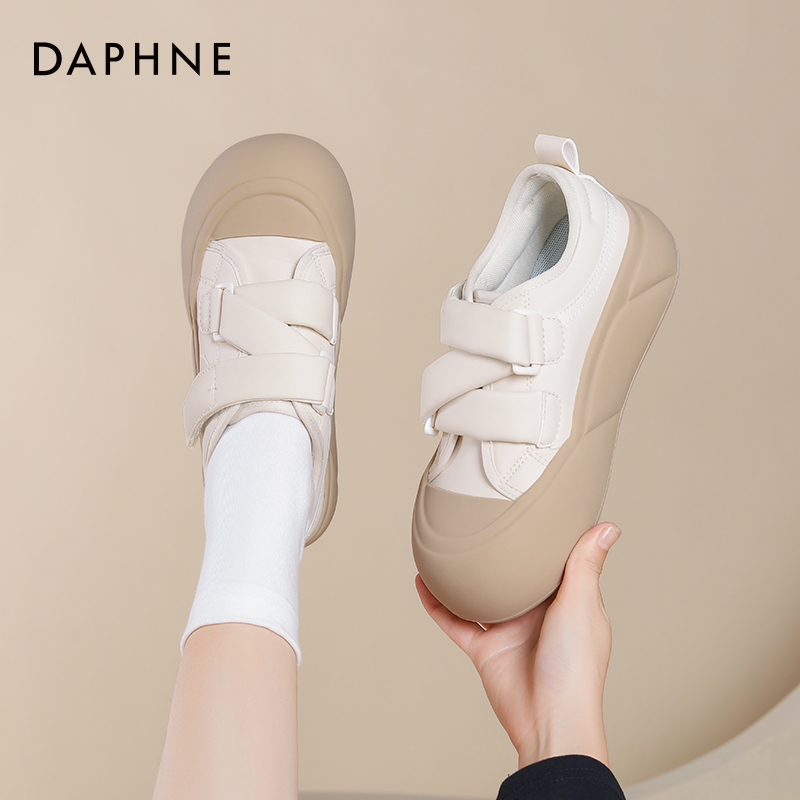 达芙妮小白鞋女大头面包鞋2025新款春季魔术贴厚底休闲鞋百搭板鞋