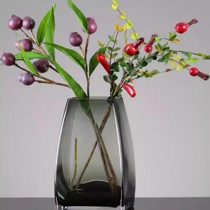 欧式创意简约方口花瓶玻璃透明水培植物轻奢花器家居客厅简约器皿