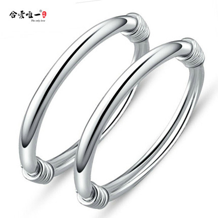 9999足银宝宝婴儿纯银手镯长命锁女光面圆肚绕丝小孩婴儿手环男女