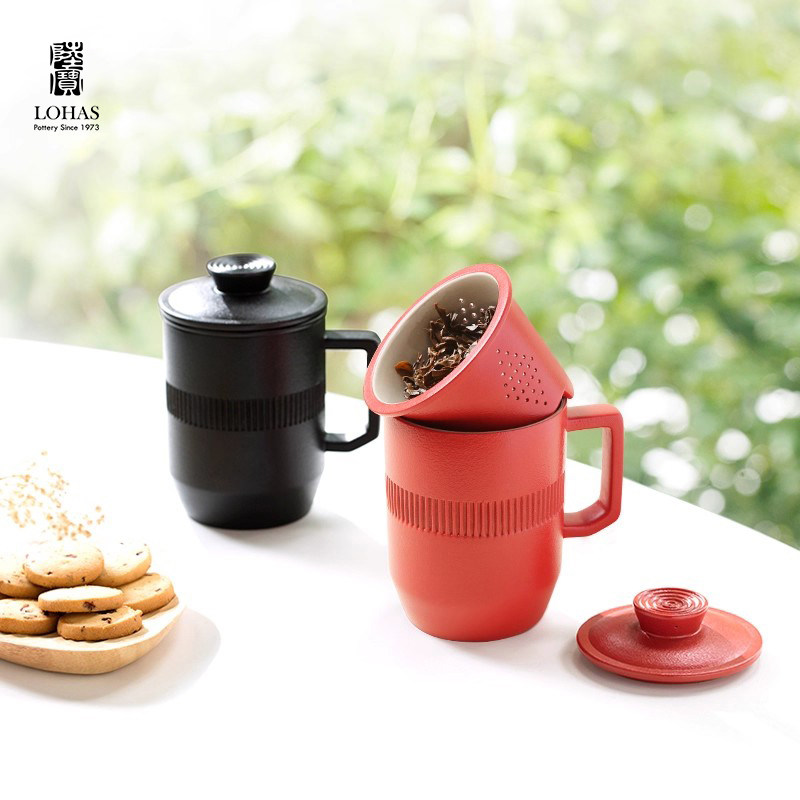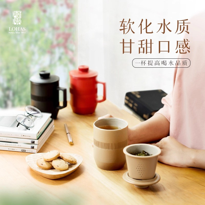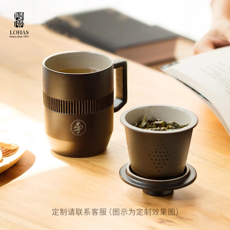 陆宝陶瓷茶杯个人办公室泡茶杯合意盖杯茶水分离水杯子大容量水杯