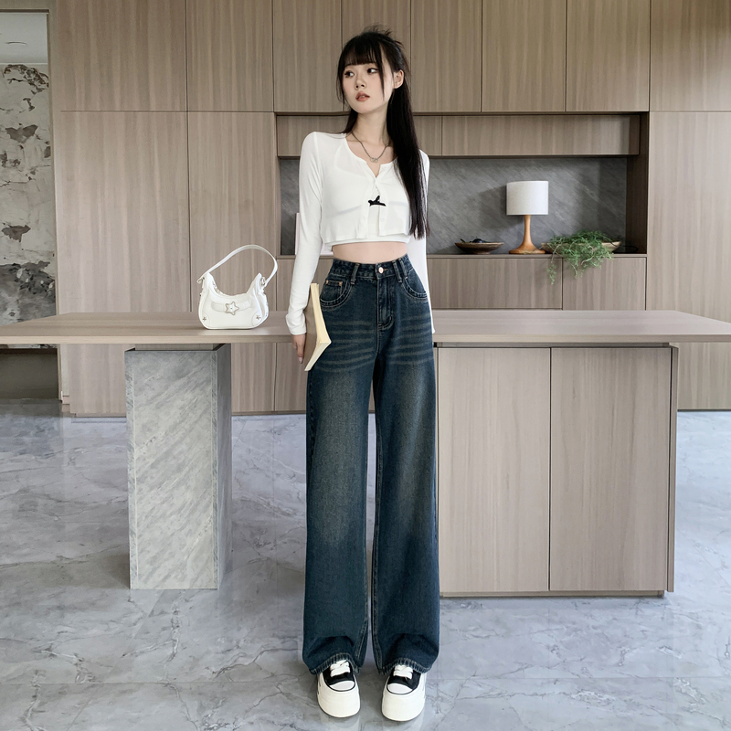 150cm新款小个子水泥灰牛仔裤女直筒窄版裤阔腿裤高腰九分xxs码