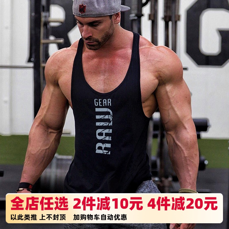 夏季健身背心男工字棉弹力透气汗衫修身上衣运动训练跨栏无袖t恤