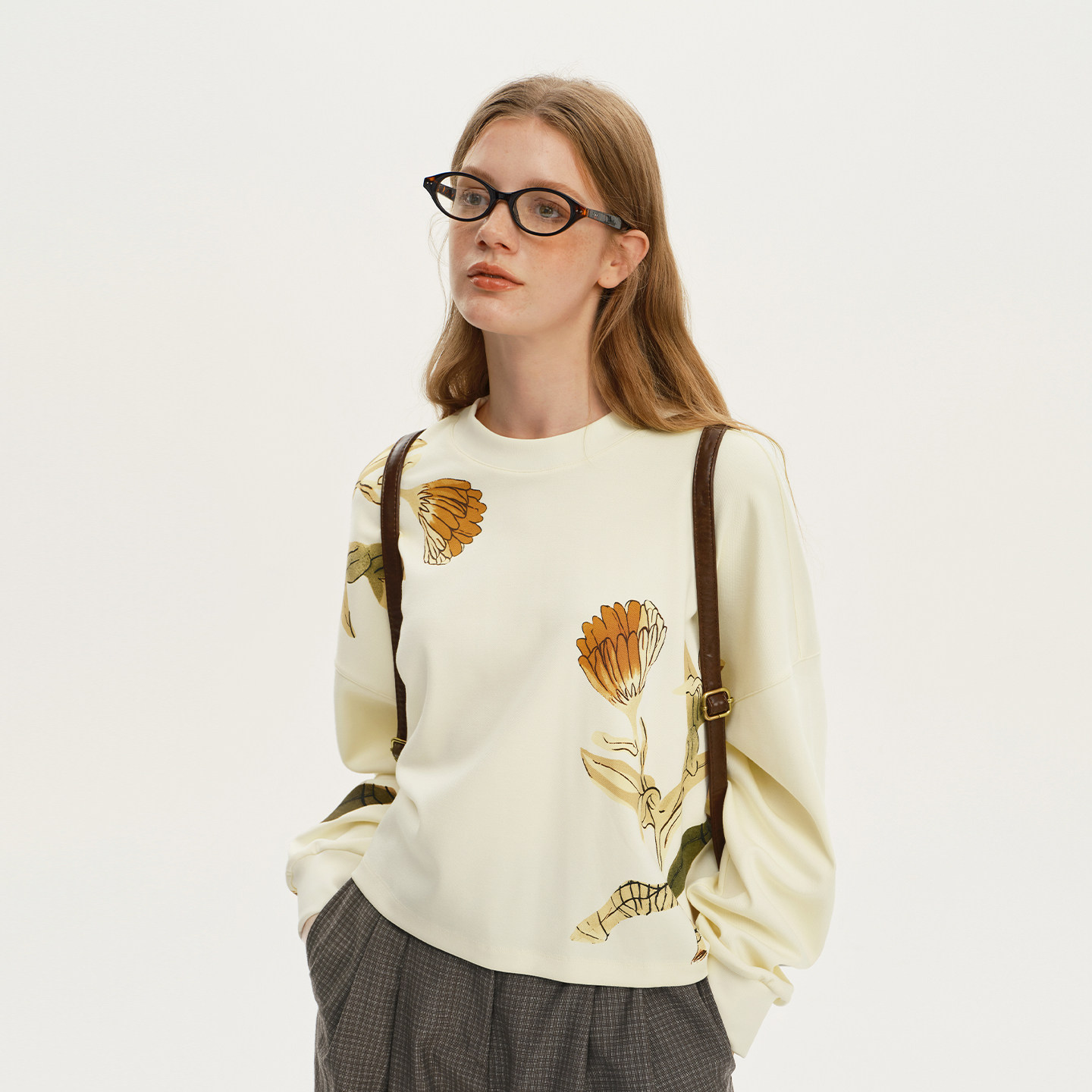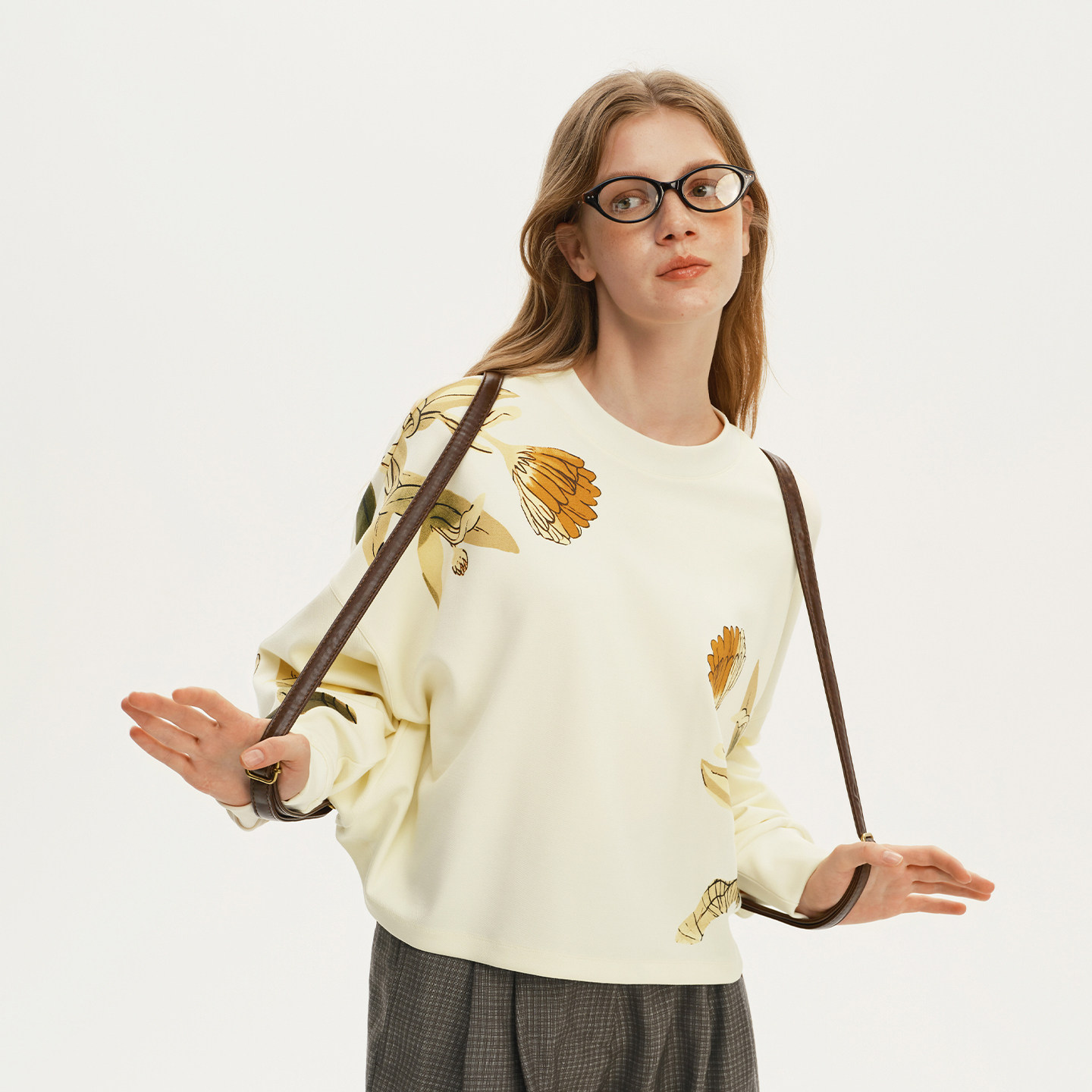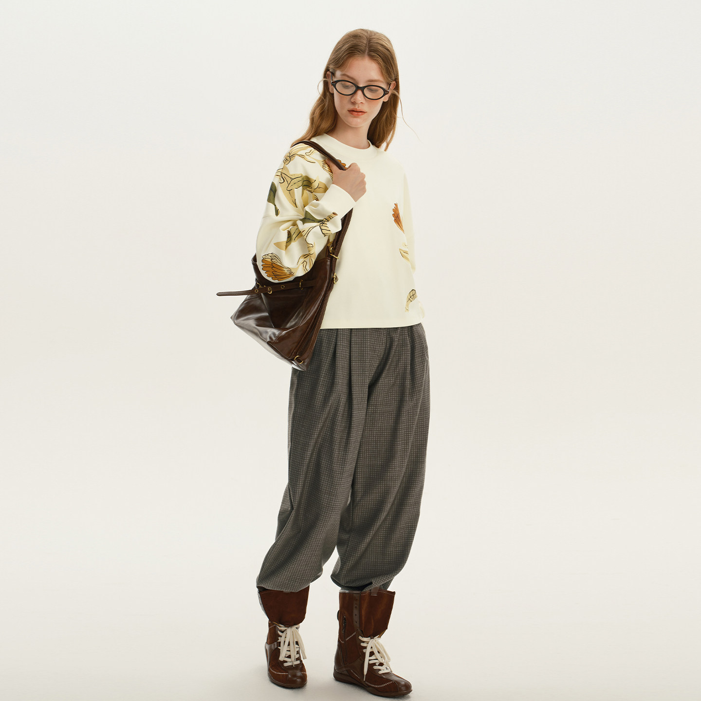 艺之卉2025秋新款慵懒时尚水墨印花卫衣亲肤竹纤维