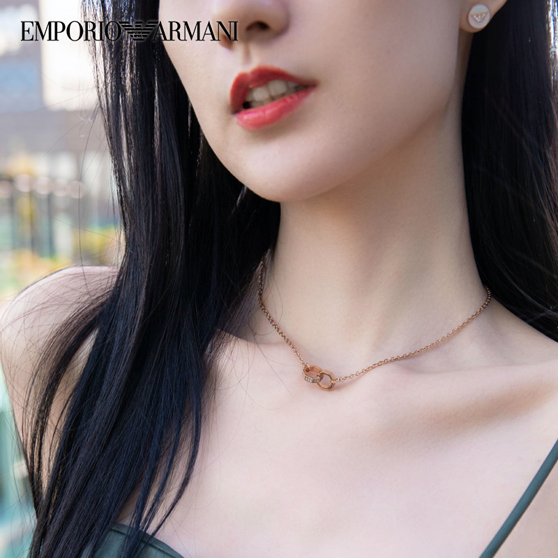 阿玛尼双环玫瑰金项链送女友礼物