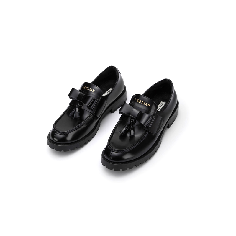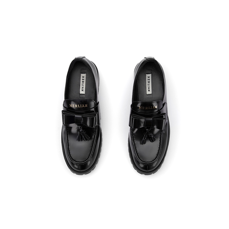 Herlian黑色流苏蝴蝶结厚底乐福鞋小皮鞋26春夏新款