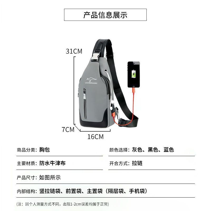 防水耐磨胸包男包男士斜挎包单肩包小背包胸前包休闲