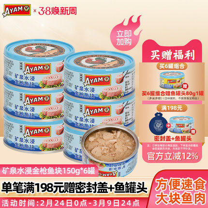 雄鸡标矿泉水150gx6金枪鱼罐头