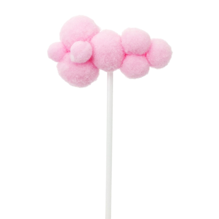 毛绒球云朵蛋糕装饰插件10个 立体生日甜品台烘焙插牌 白色粉蓝色