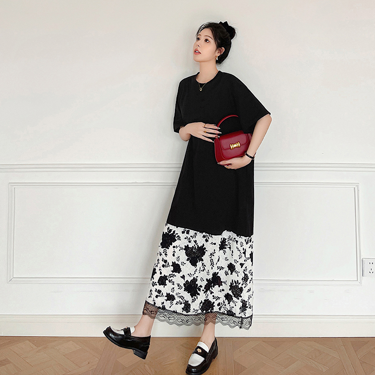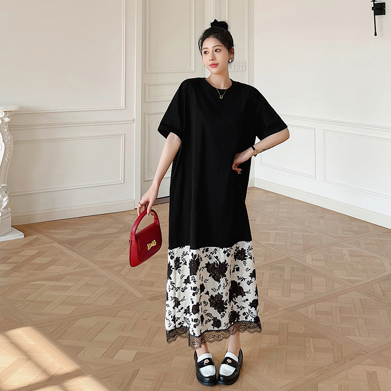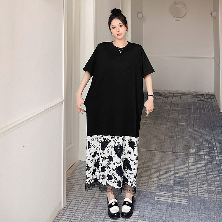大码mm胖潮连衣裙宽松遮肉显瘦2025夏季新款个性拼接气质长裙轻奢