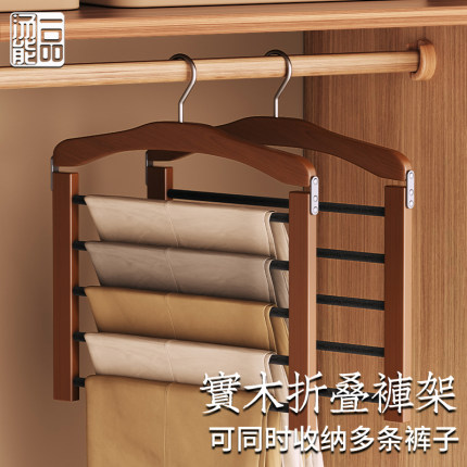 汤能一品无痕防滑实木裤子架植绒木质衣架多层西裤家用木裤挂