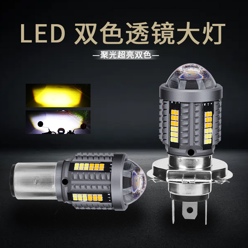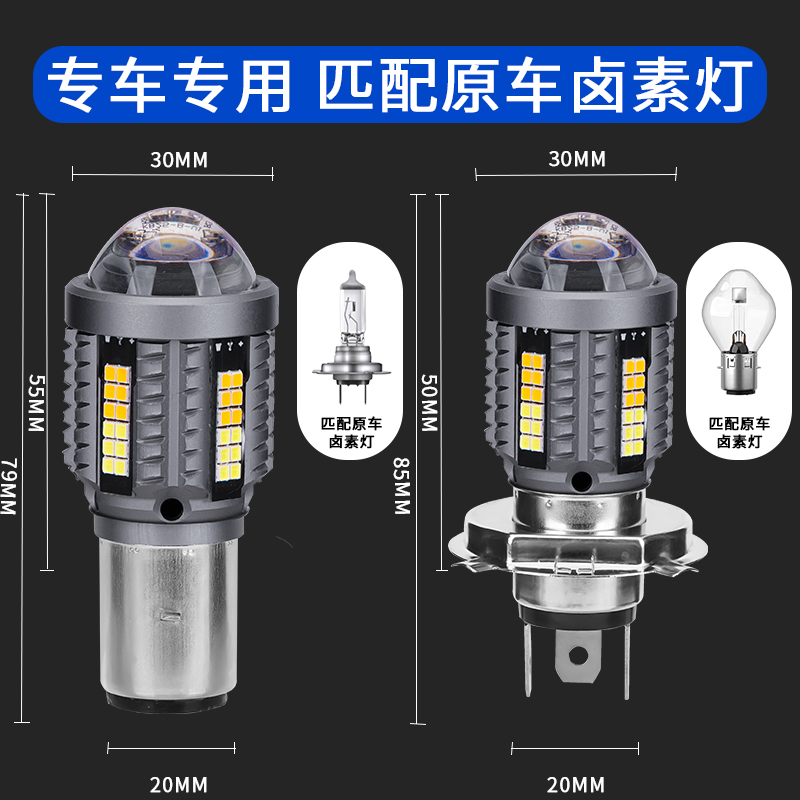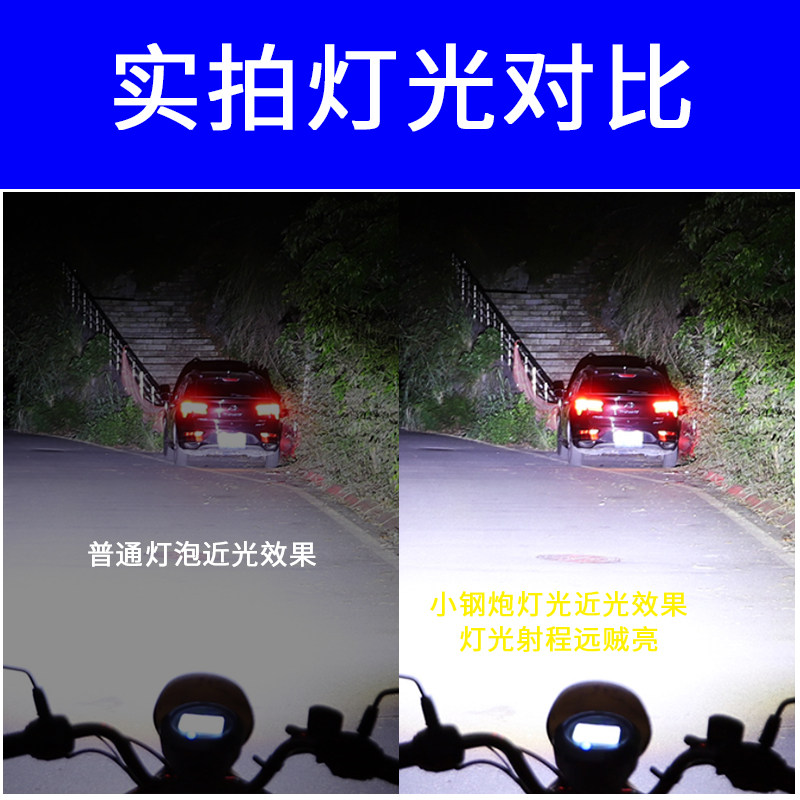 适用于小龟王电动摩托车LED透镜大灯改装配件远光近光一体灯泡