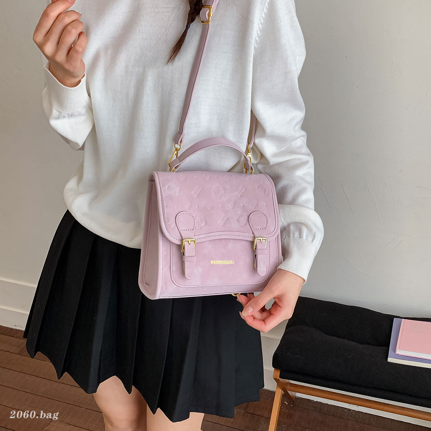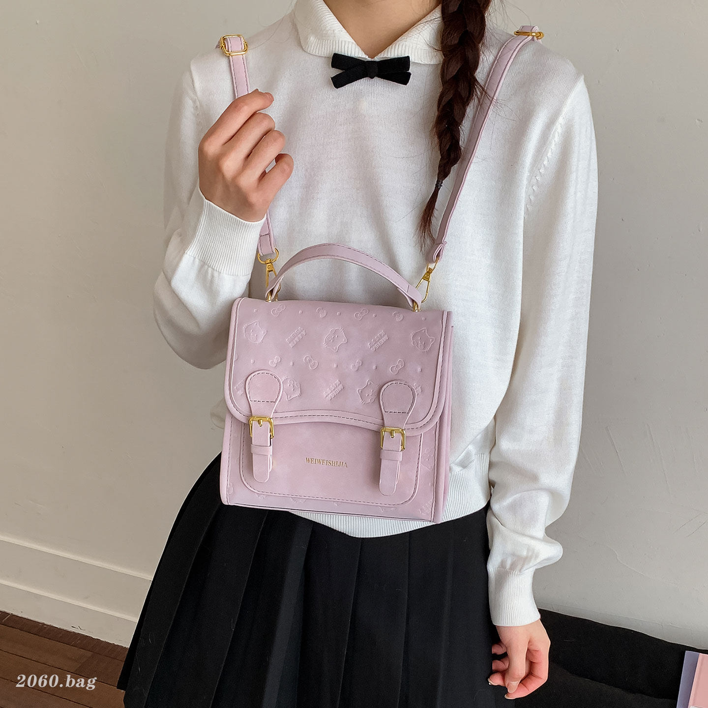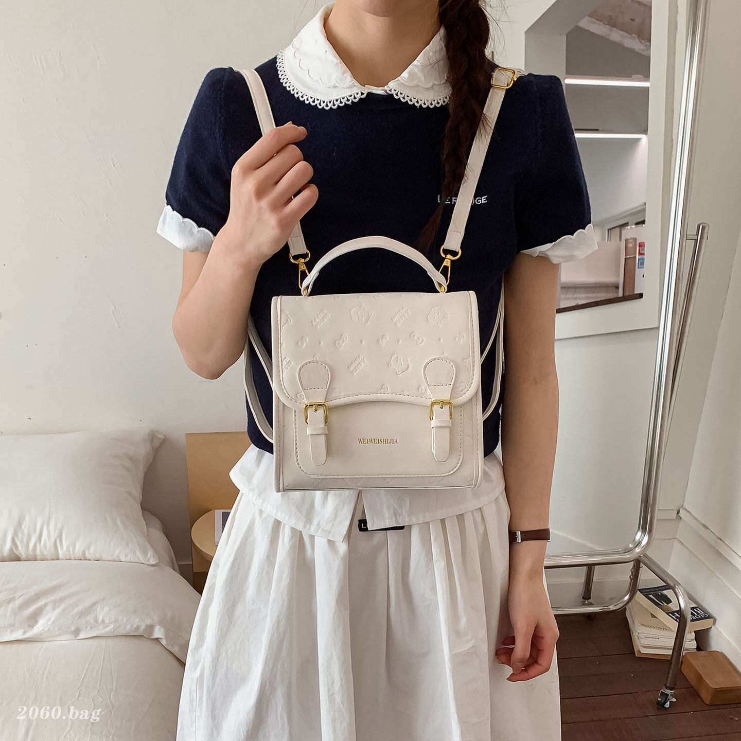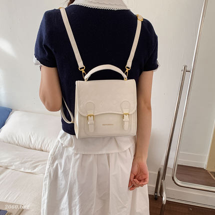 小众韩版压花双肩包女2026新款通勤百搭大容量学院风上课背包质感