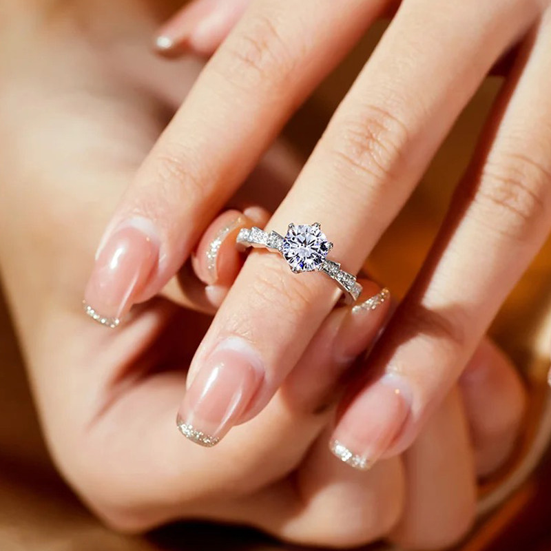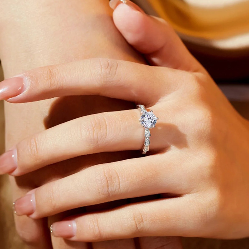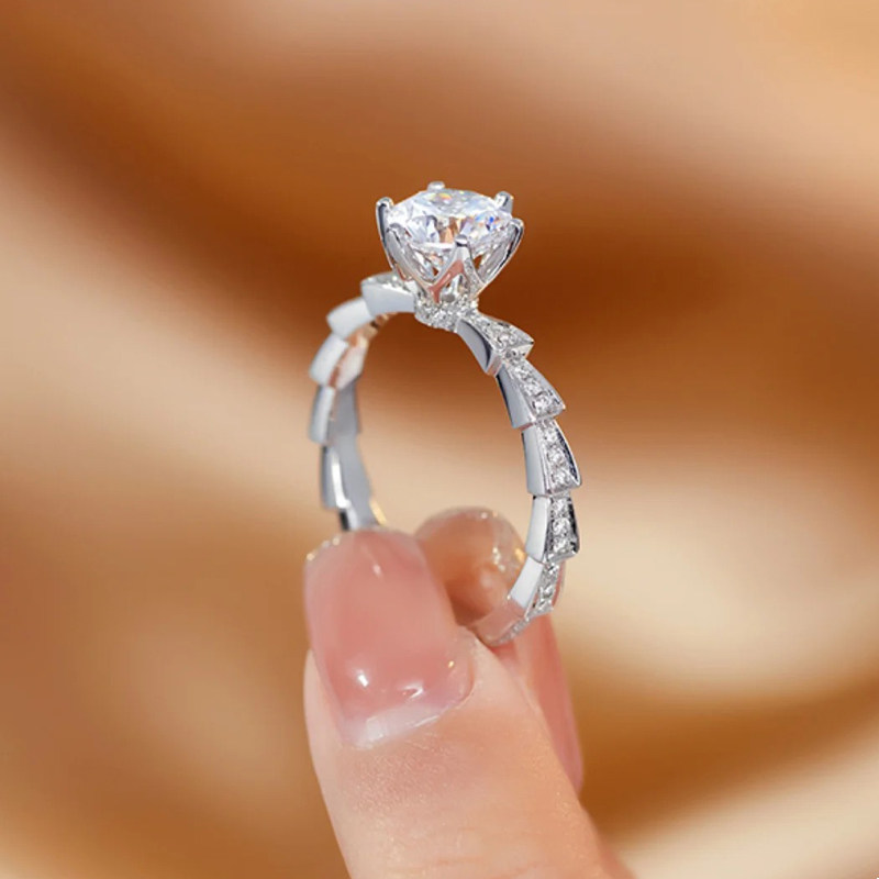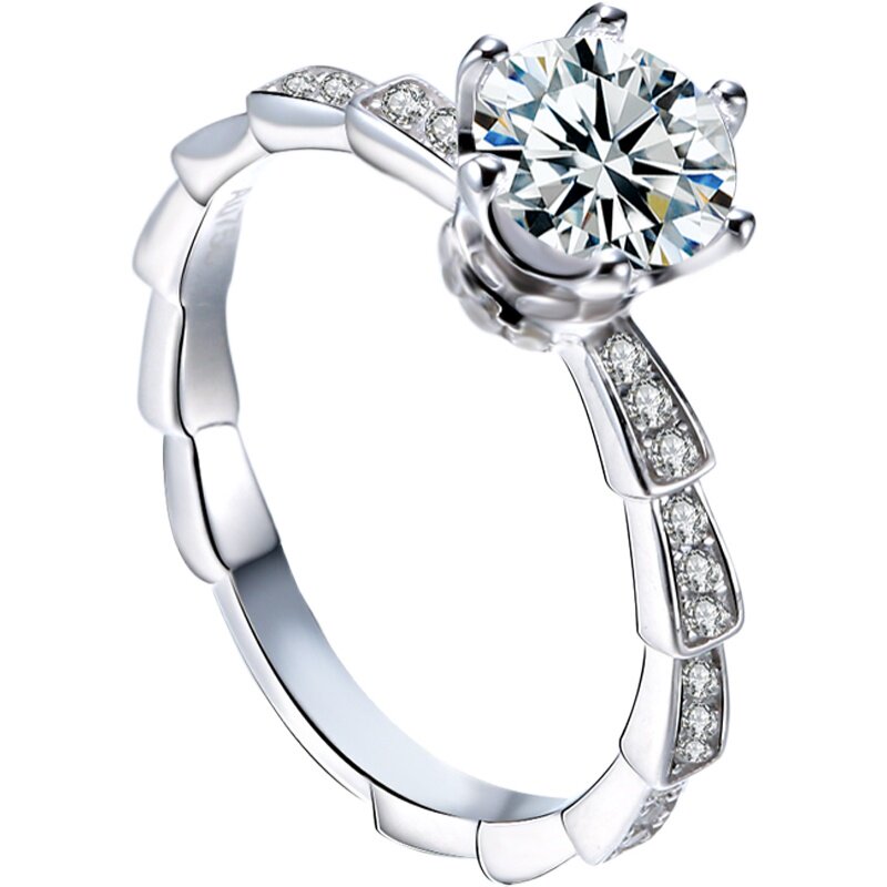 莫桑石镶嵌钻戒蛇骨戒指s925纯银饰品经典女款结婚情侣对戒可刻字