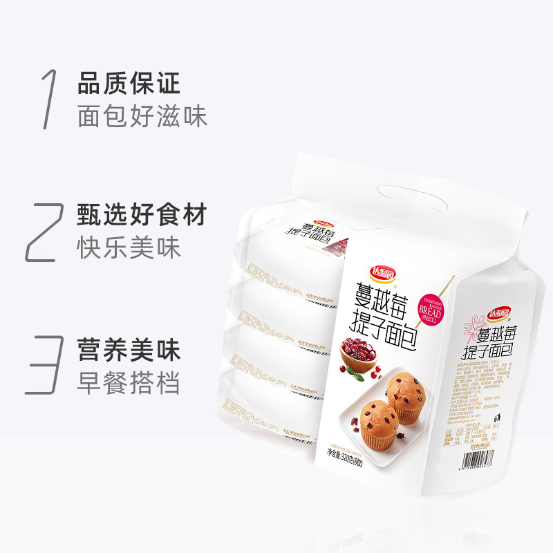【零食广场】达利园糕点蔓越莓提子面包320g/包休闲零食早餐夜宵