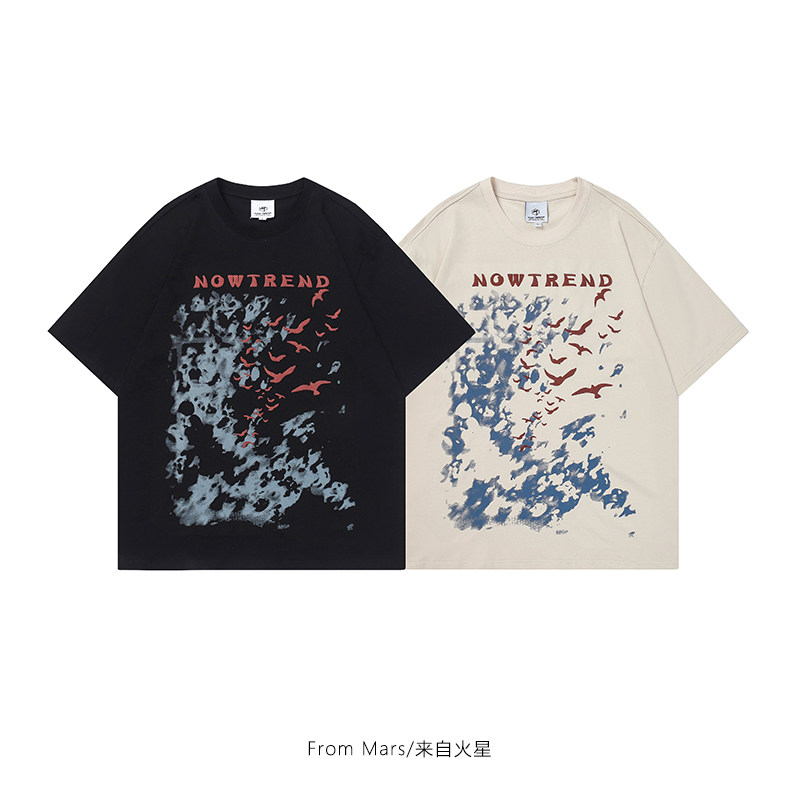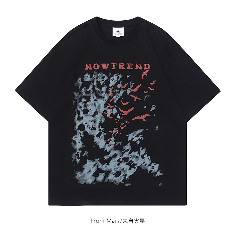 From Mars 天边飞翔的鸟 美式街头字母涂鸦印花短袖T恤宽松男女bf