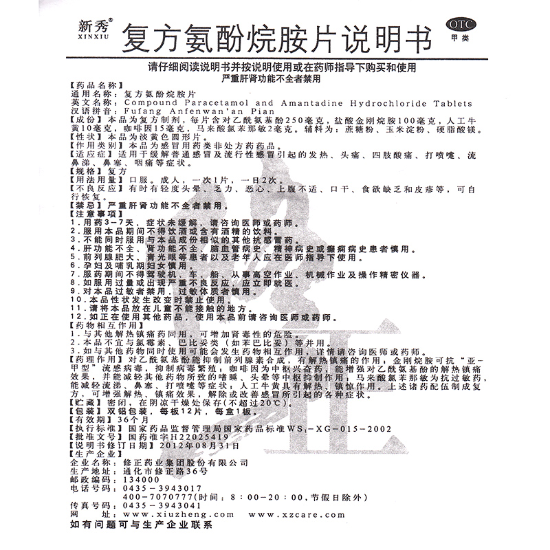 【新秀】复方氨酚烷胺片2mg10mg15mg100mg250mg*12片/盒
