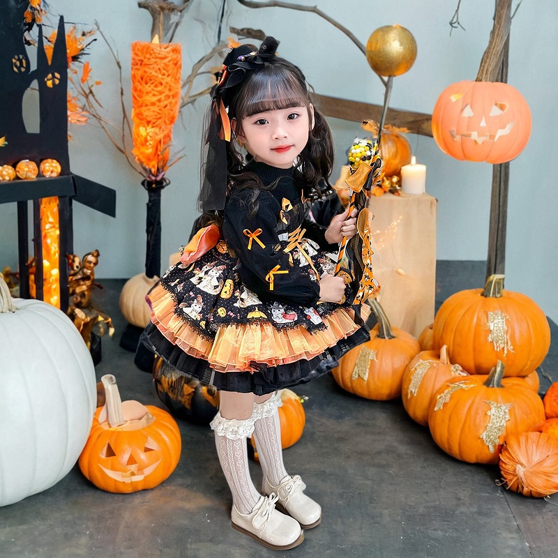 万圣节儿童服装秋冬宝宝捣蛋公主连衣裙女童cos洛丽塔南瓜女巫裙3