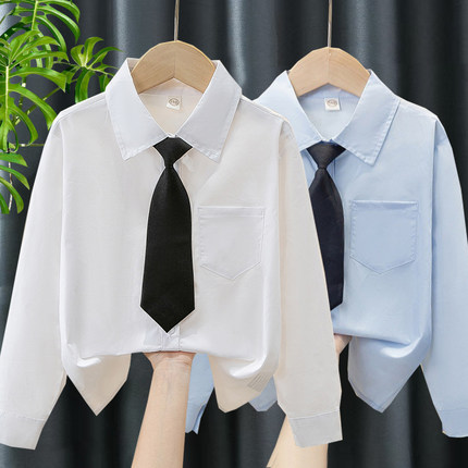 女童衬衫2025新款纯棉长袖衬衣中大童白衬衣春秋学院风儿童男上衣