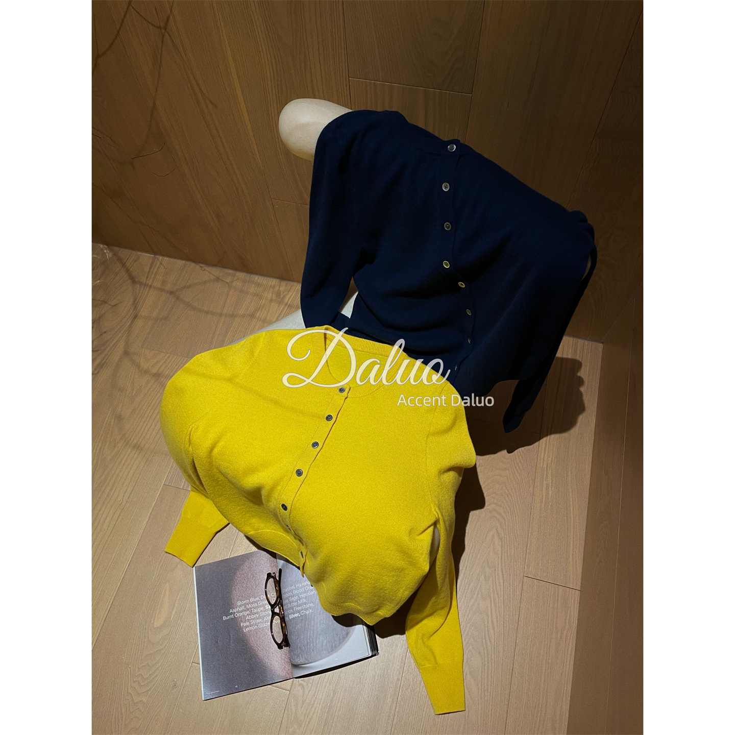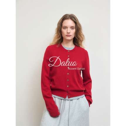 大罗Daluo 100%绵羊毛基础百搭圆领排扣长袖针织小开衫短款毛衣