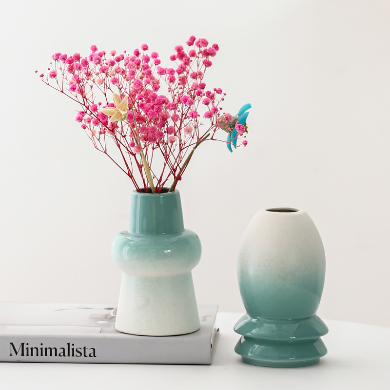小清新简约渐变绿陶瓷花瓶餐厅桌面插花器装饰品客厅家居养花摆件