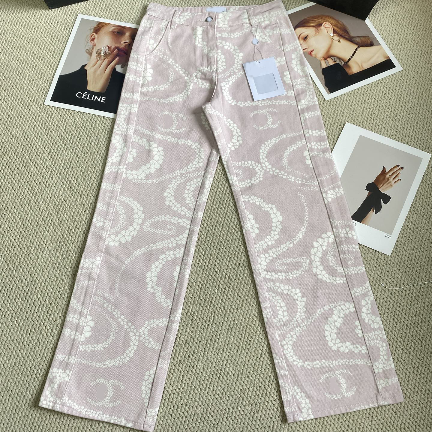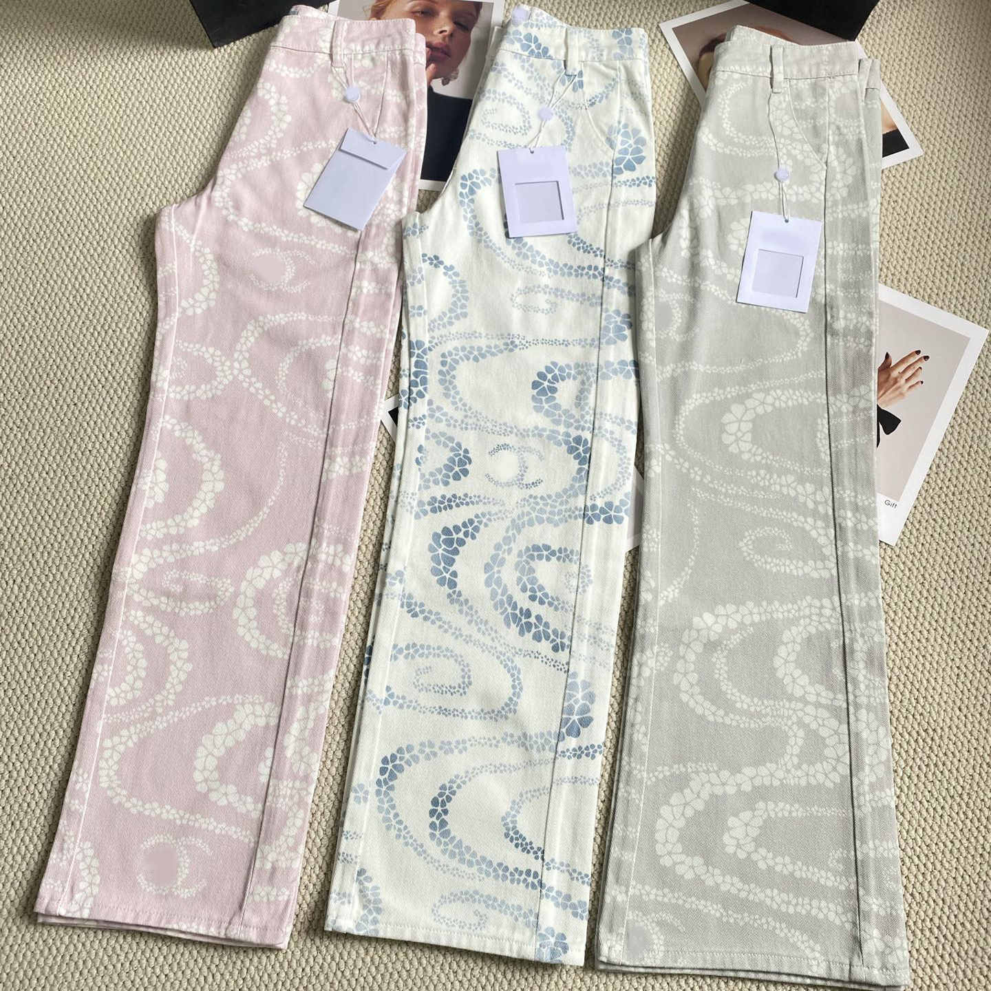 25SS新款欧货高端女装高品质微喇叭沙滩系列印花高腰直筒牛仔裤女