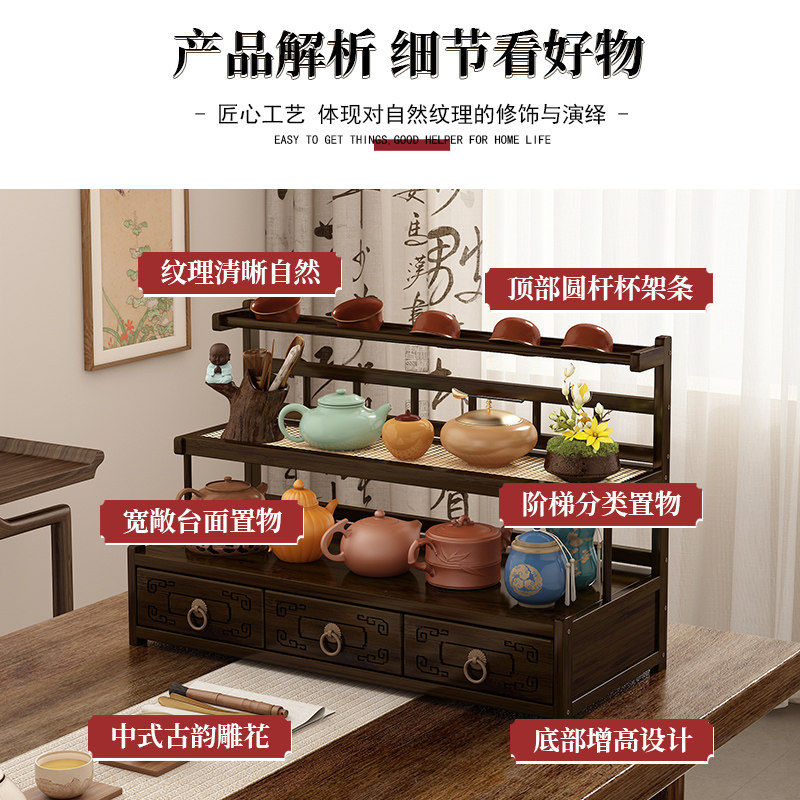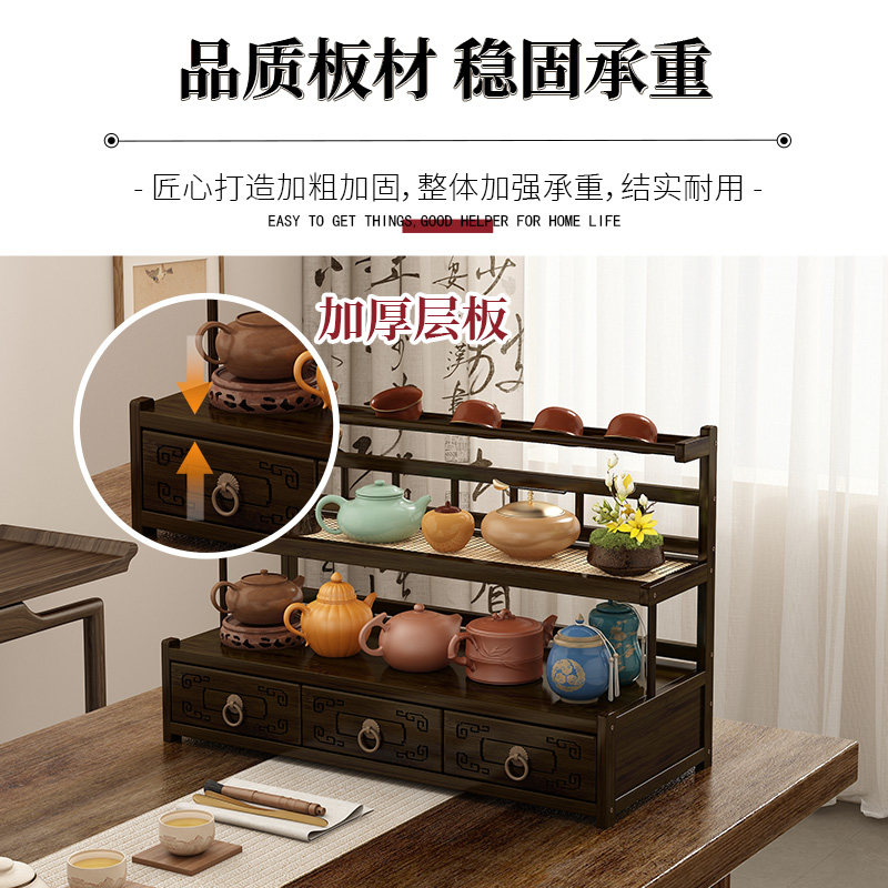 桌面博古架新中式小型茶杯收纳置物架非实木茶具展示架紫砂壶展架