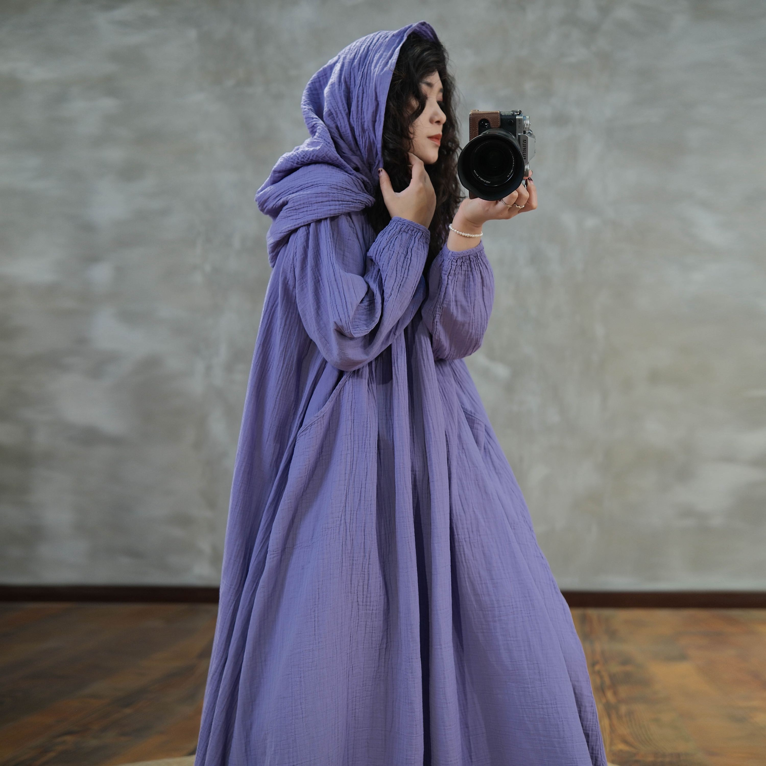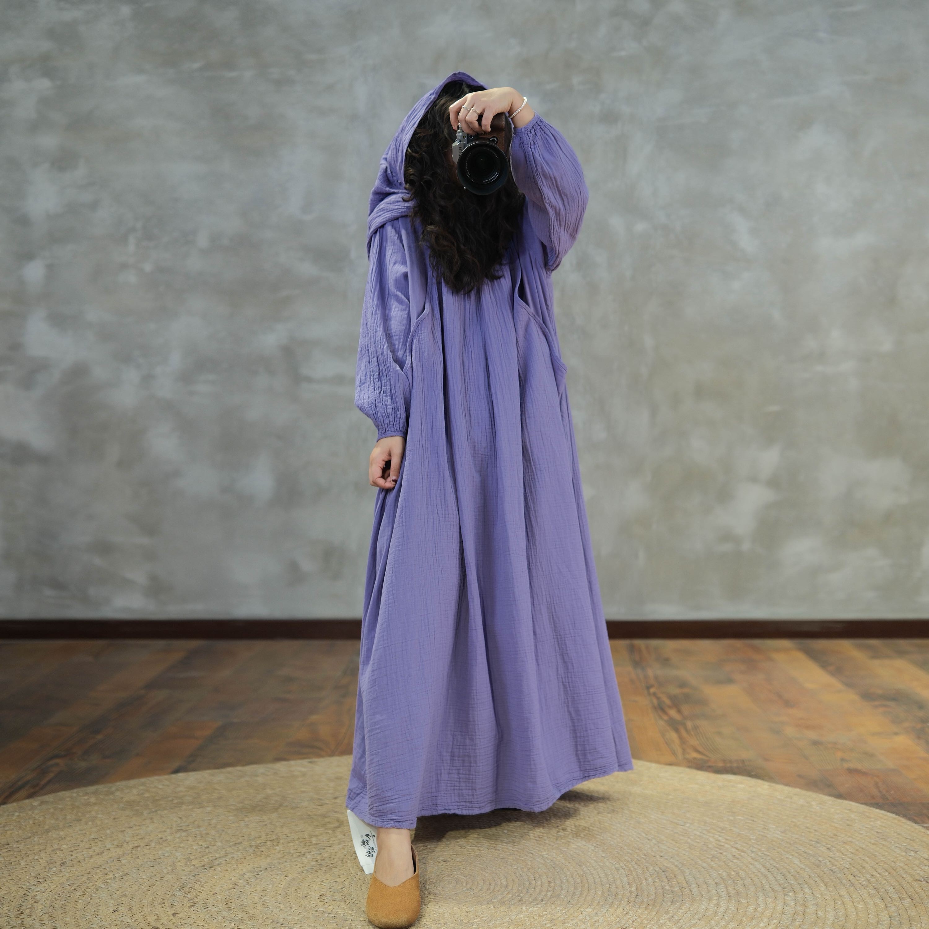 YIMIAN 慵懒慢人风女巫连帽宽松气质个性休闲长袍连衣裙23417