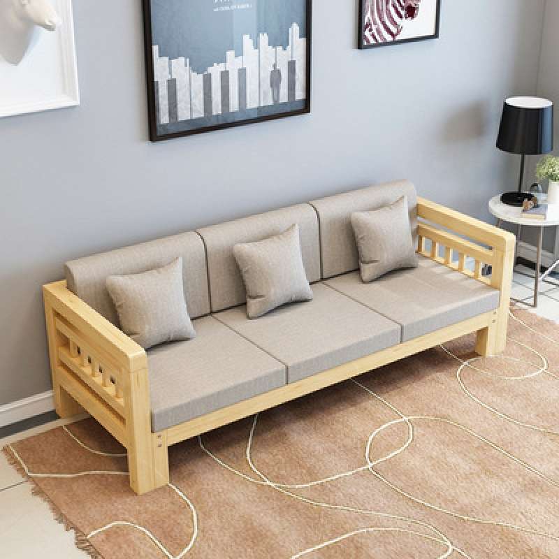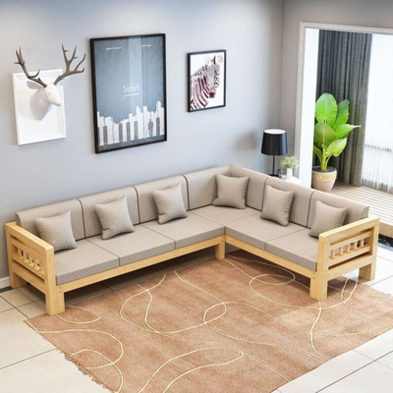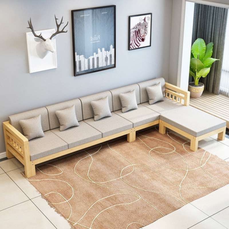 现代简约全实木沙发组合小户型客厅转角贵妃L型松木沙发三人中式