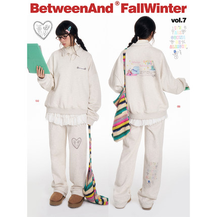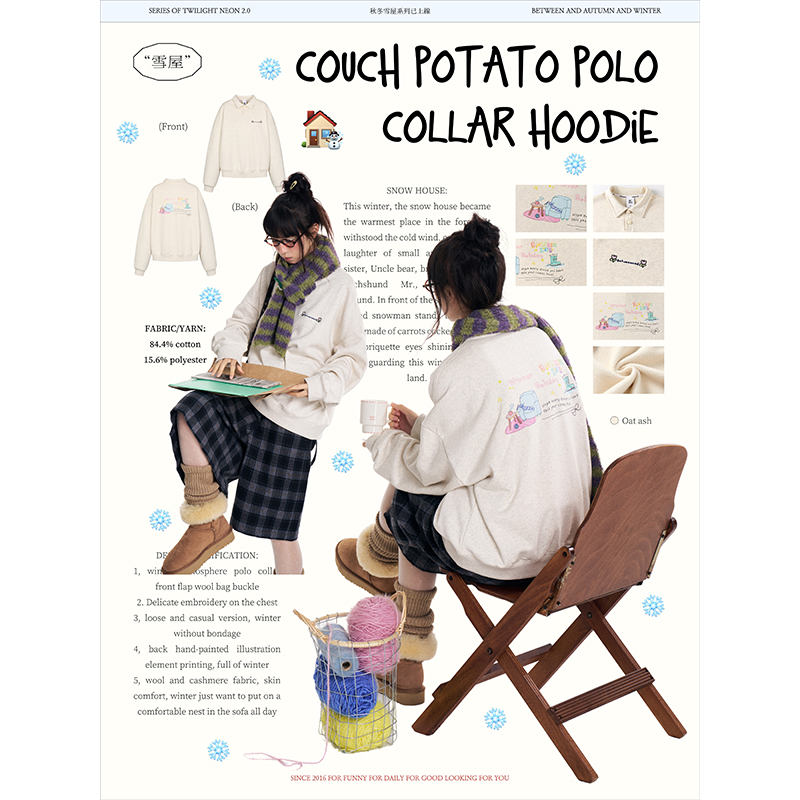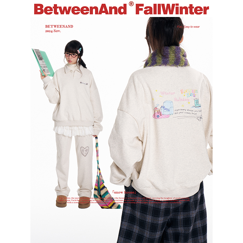 BETWEENAND 秋季原创手绘插画沙发土豆polo领卫衣加绒上衣外套女