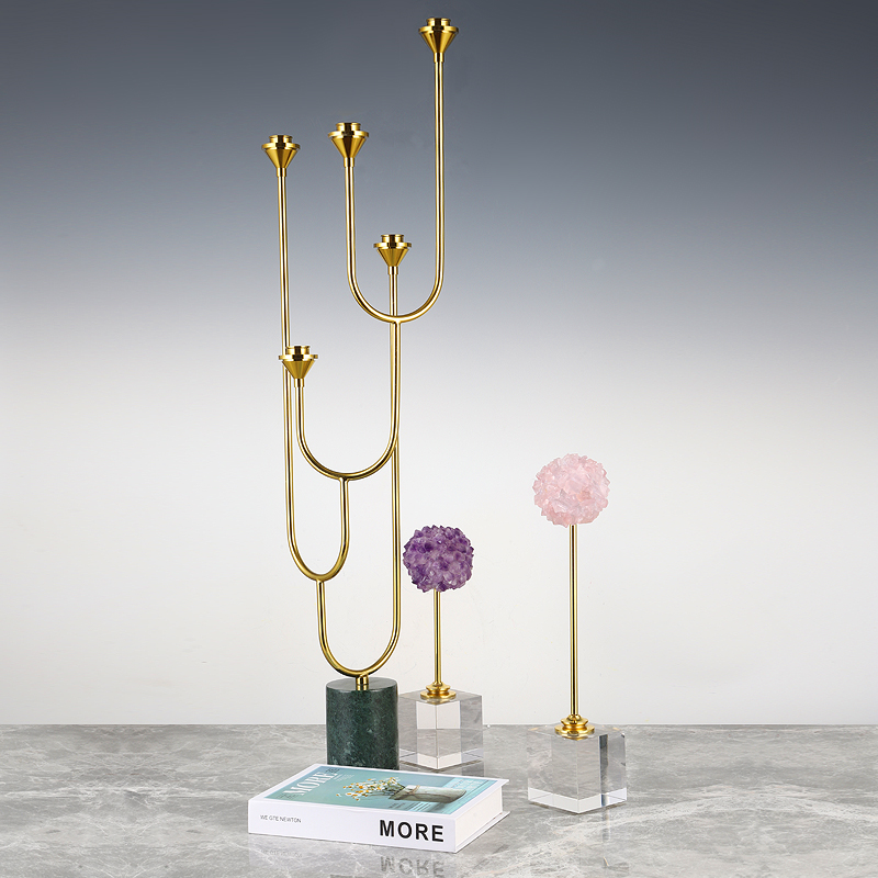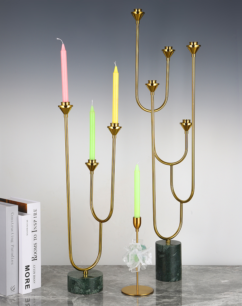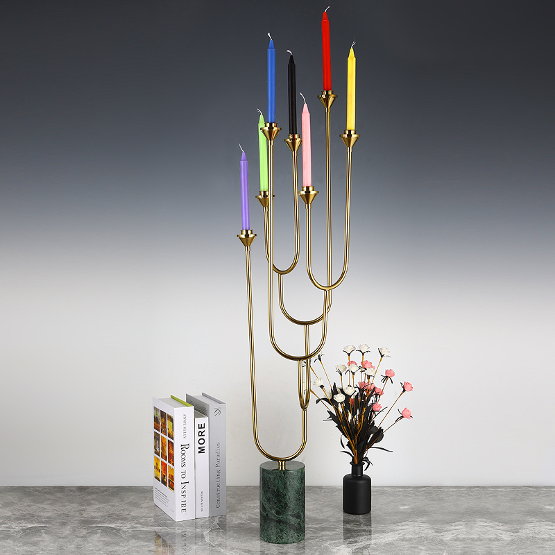 欧式轻奢餐桌大理石超大号多头蜡烛台样板房别墅酒店家居装饰摆件