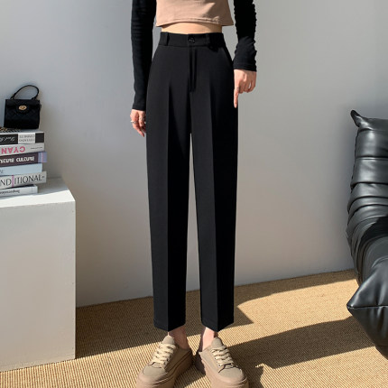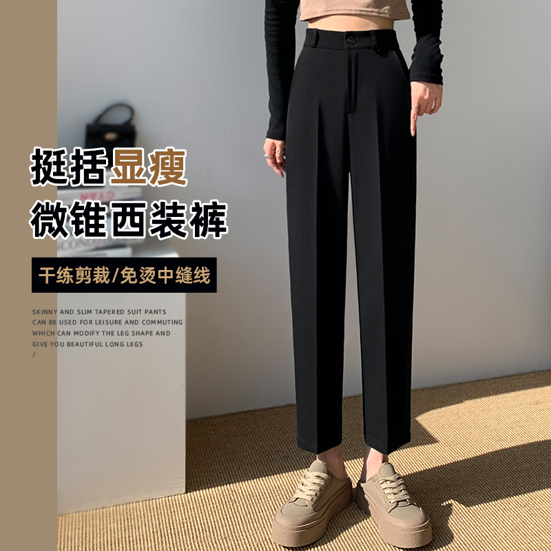 西装裤女2023宽松春秋薄款直筒裤高腰九分大码夏季烟管裤哈伦裤子