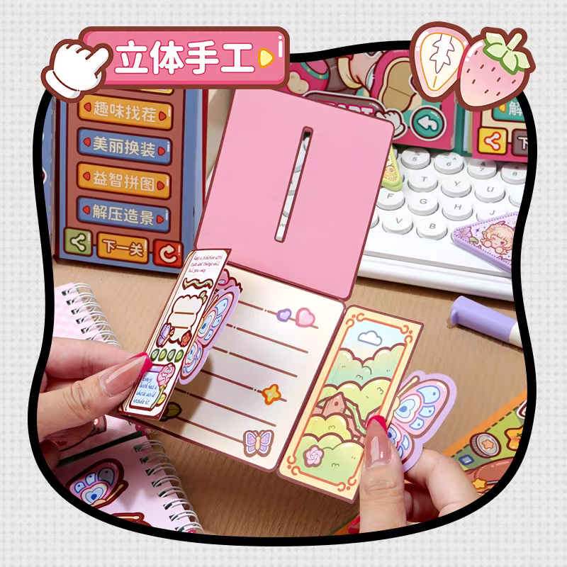 小麻薯闯关游戏本贴纸书画女孩儿童解压玩具手工diy小学生安静书