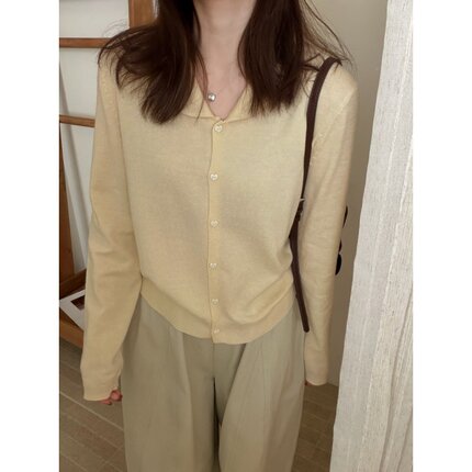 此外 娃娃领软糯薄款针织小开衫女2026春季新款小个子薄毛衣外套