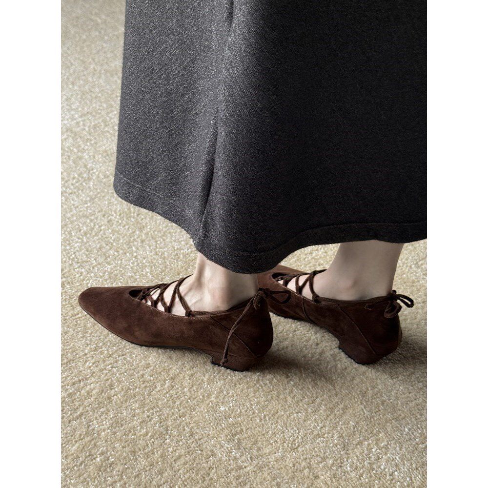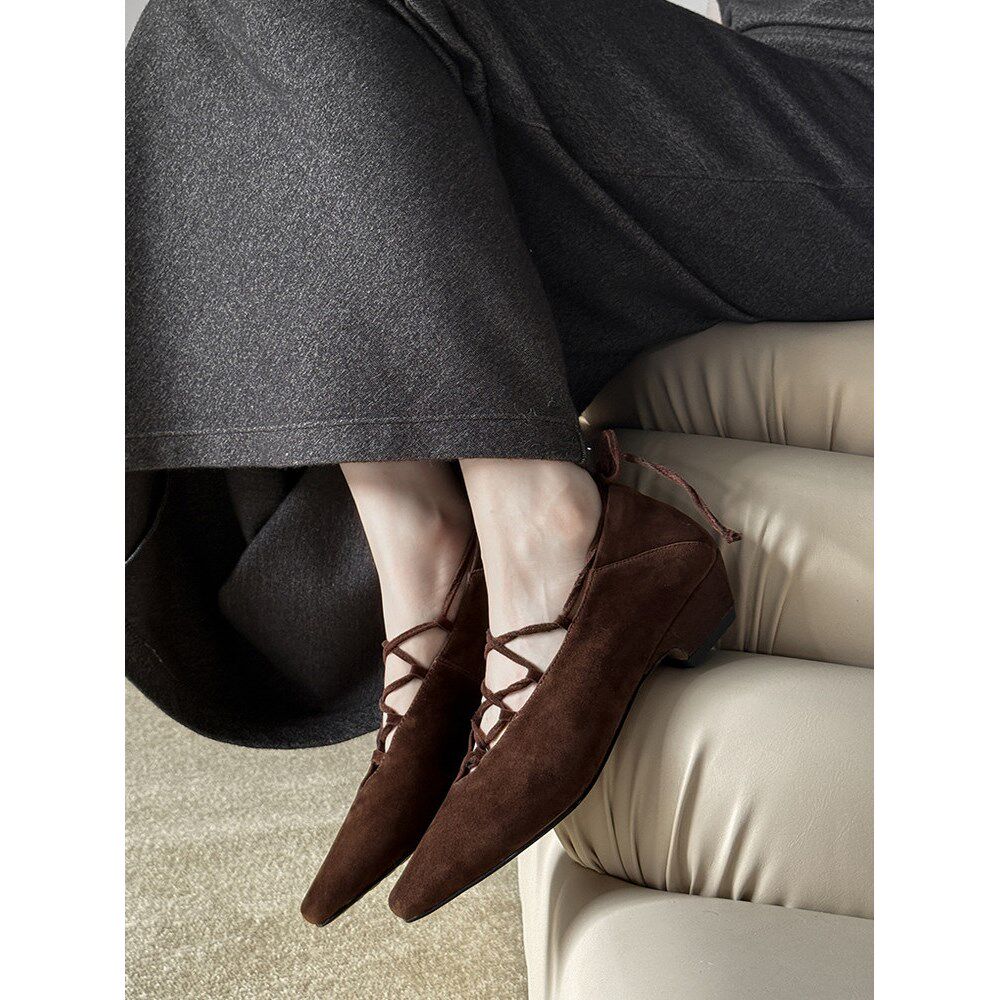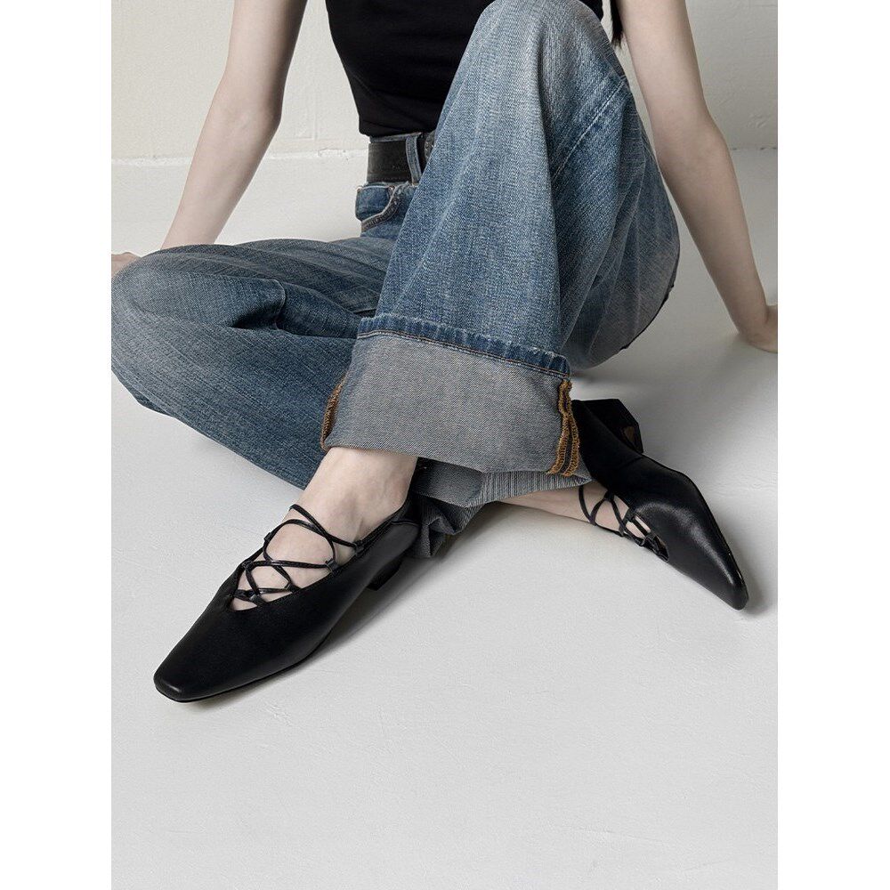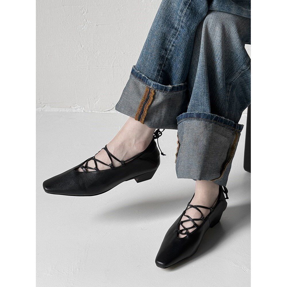 真皮法式复古2025方头低跟巨好看配裙子芭蕾风交叉绑带玛丽珍单鞋